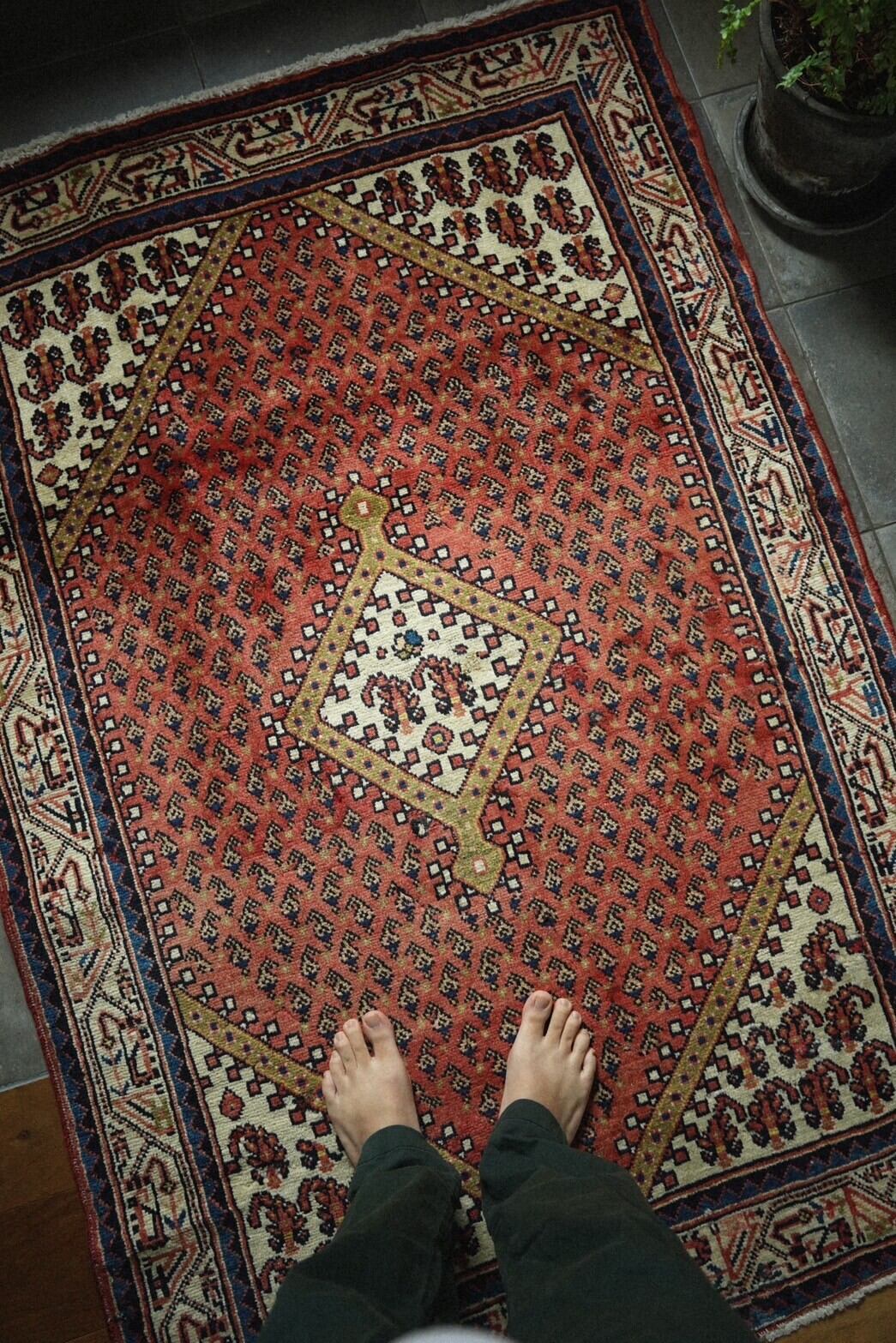1980年代に織られたペルシャ北西部にあるセネ(現サナンダジ)産のヴィンテージラグ。