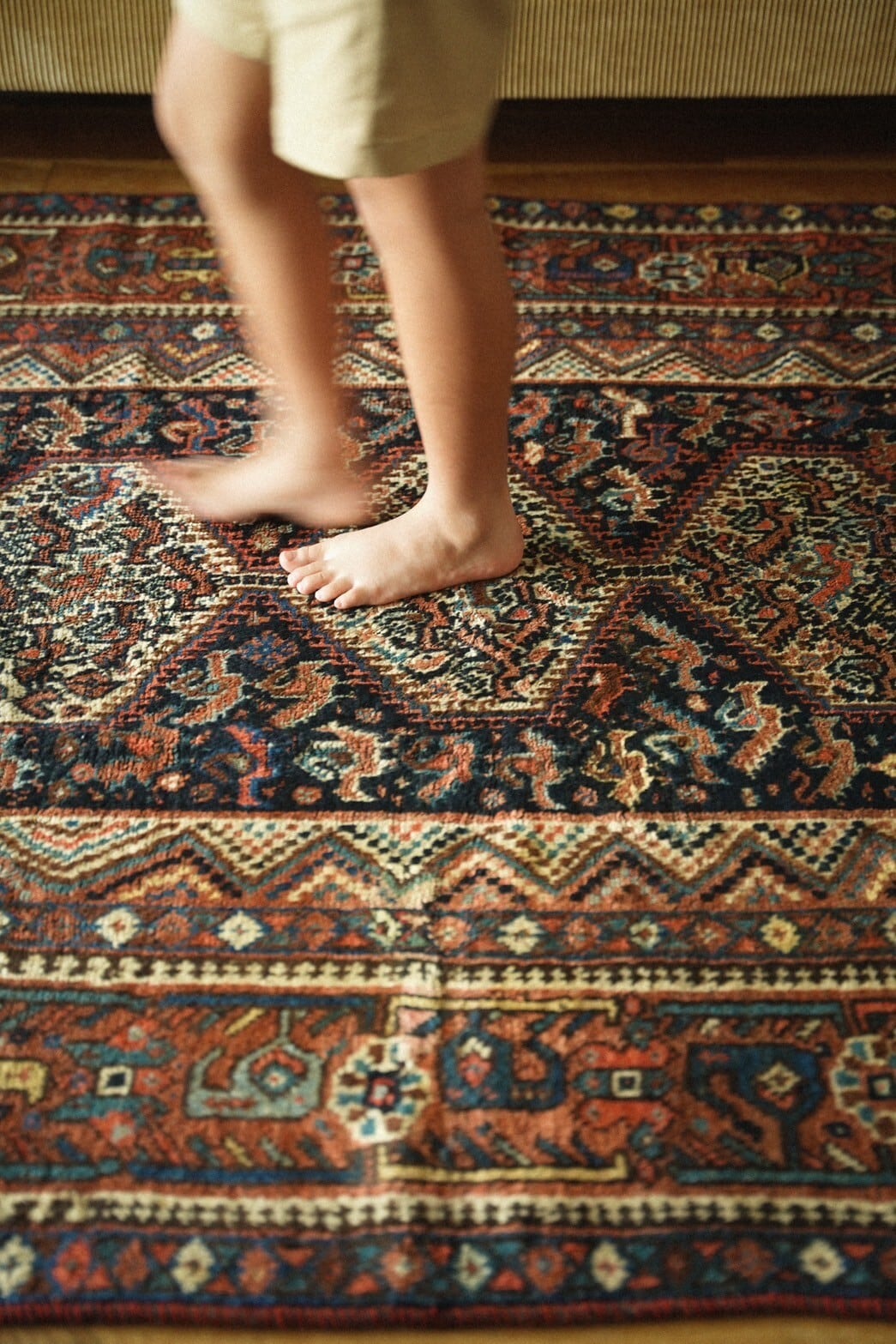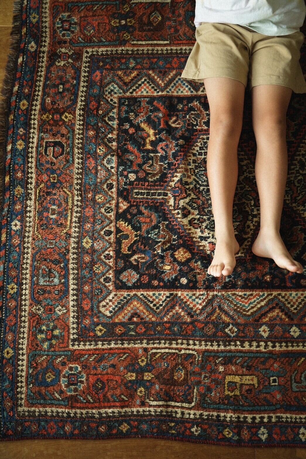 経年により柔らかな質感になったウールは艶も増し、アンティークラグとしての輝きを増しています。