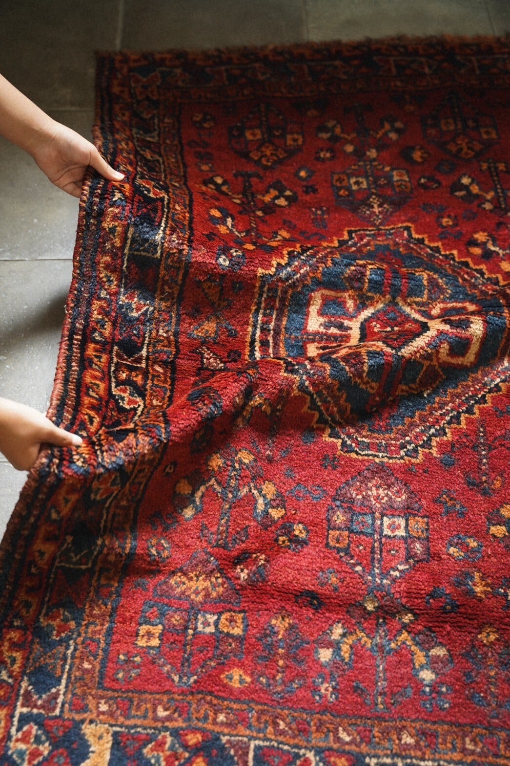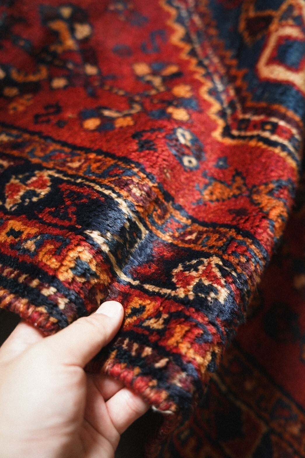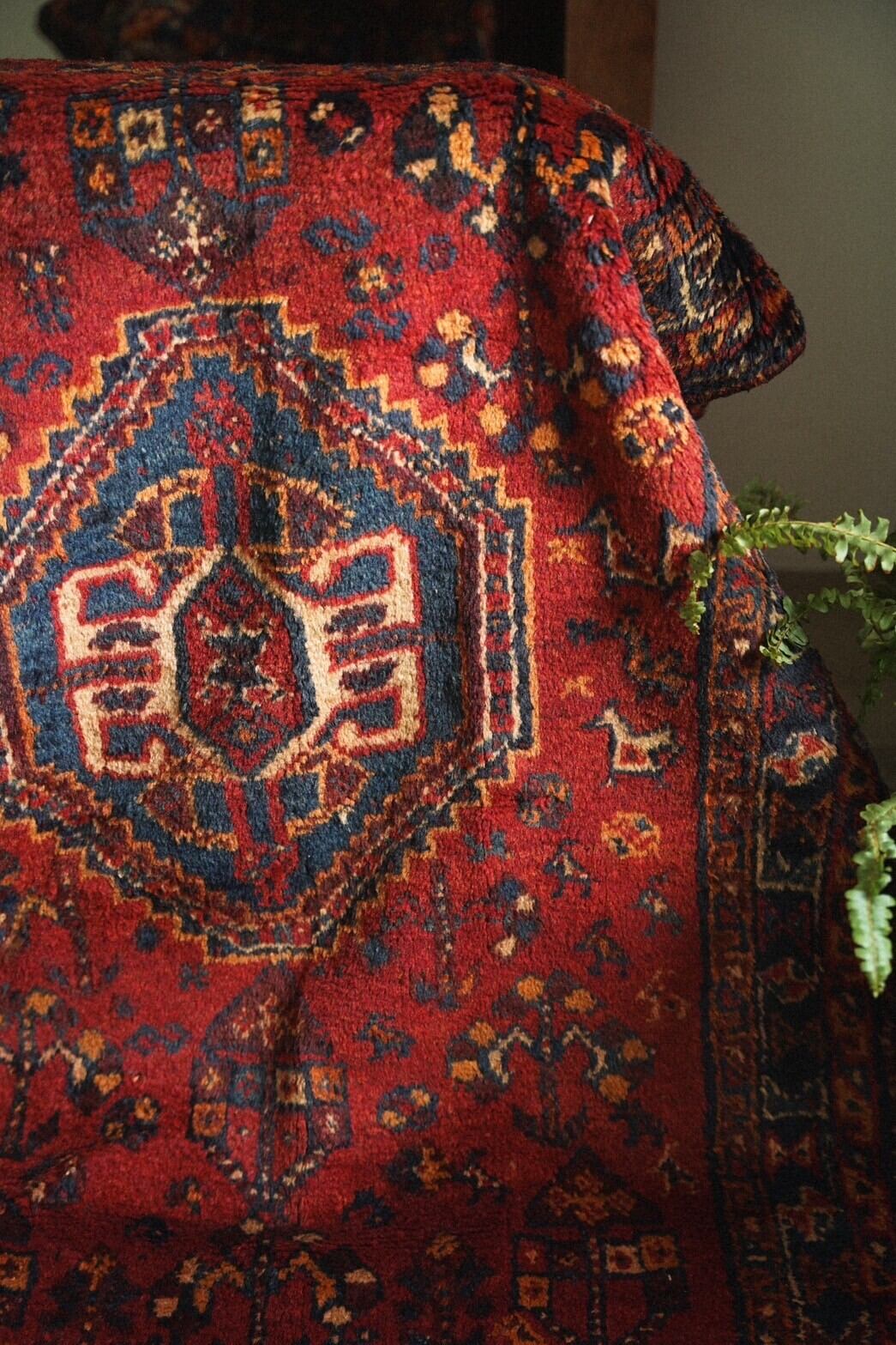 華やかな雰囲気になる赤系のカシュガイラグはお部屋の主役にもアクセントにもピッタリな一枚。
