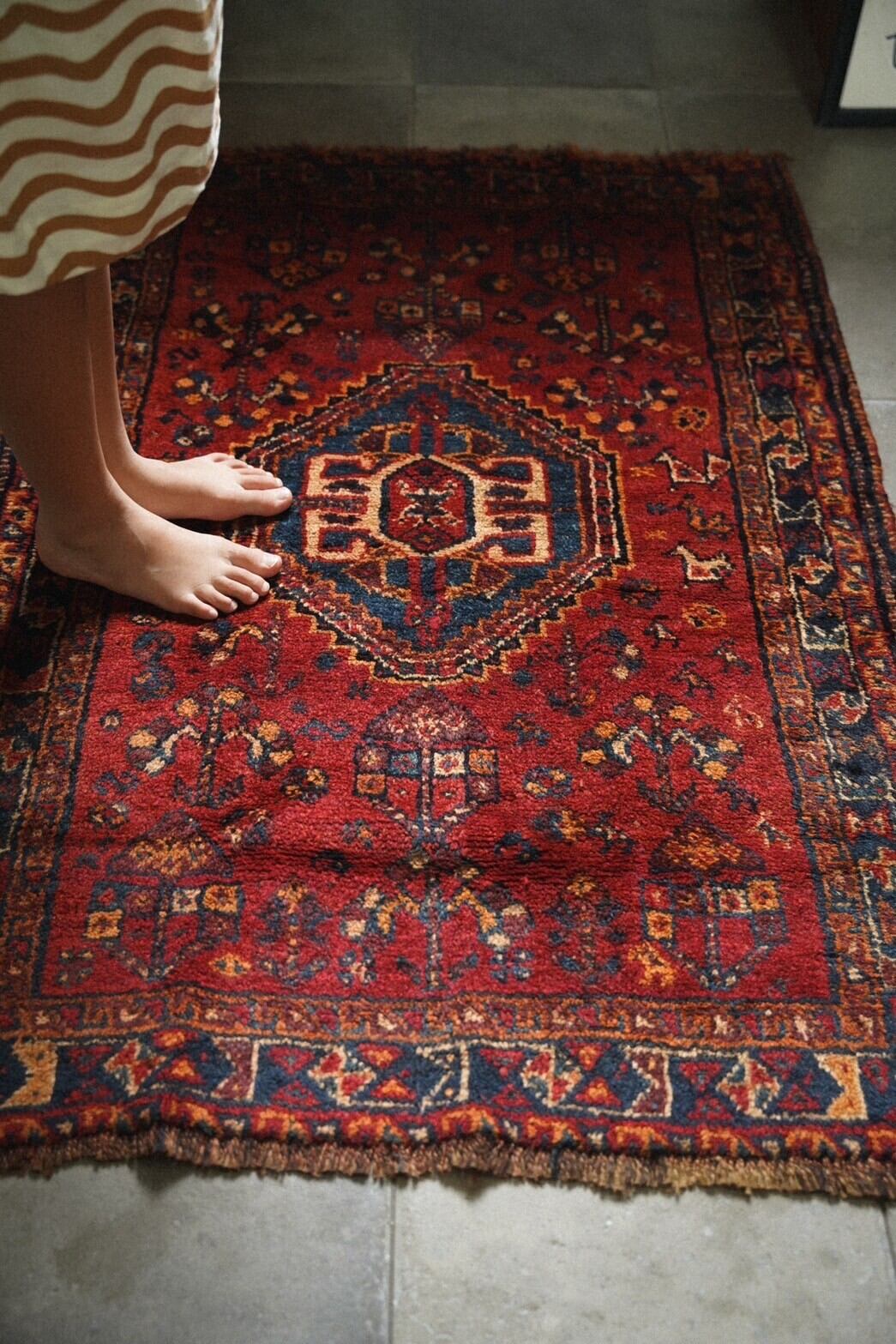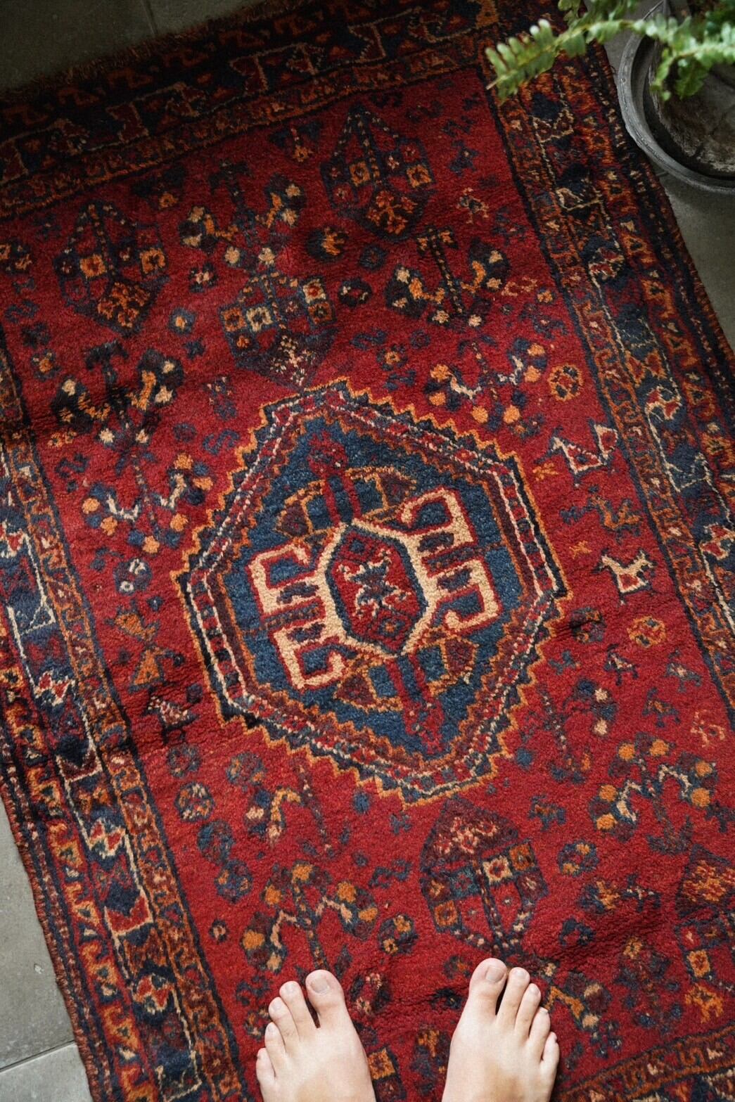 経年により柔らかくなったウールは艶も美しく、素足で乗るととても気持ち良いです。