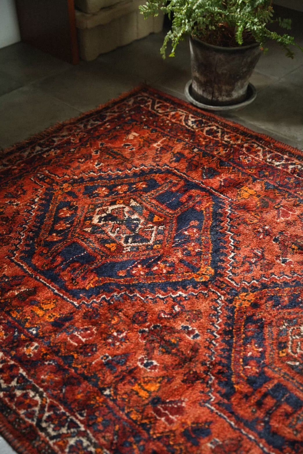 華やかな色味とデザインの赤系ラグはお部屋の雰囲気を明るくしてくれます。