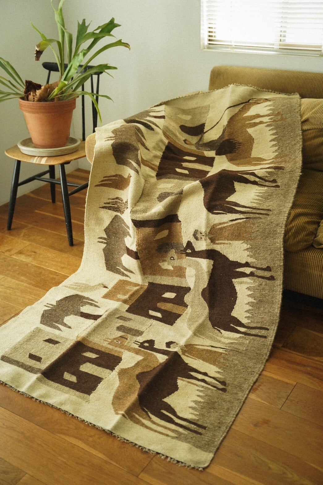 ペルシャ絨毯でも見られる精密画のようなピクトリアルラグとはまた一味違うゆるい雰囲気が魅力のキリムです。