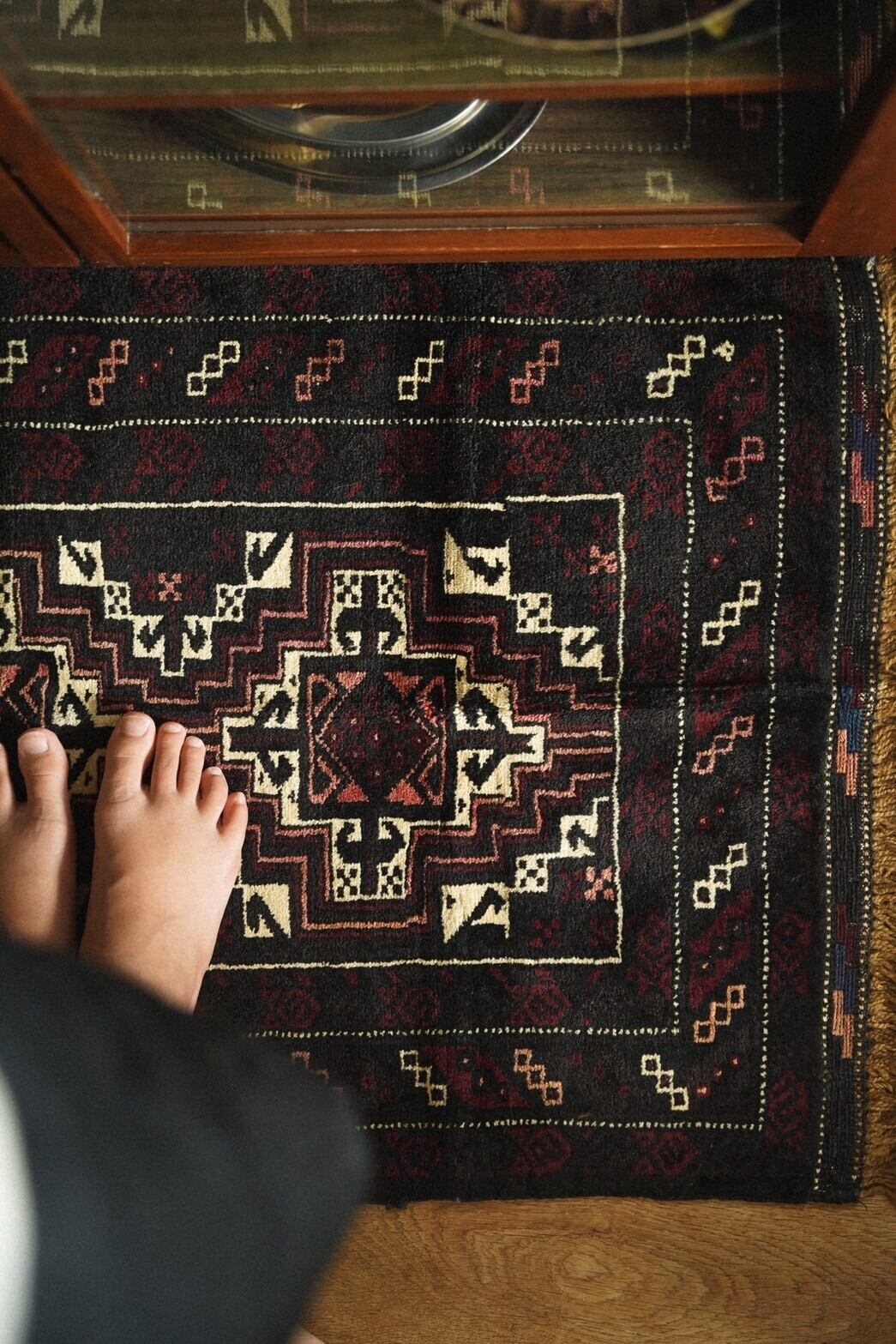 バーリシトと呼ばれる家財や食材を入れたり、屋内ではクッションとして使用される袋状のものをラグに仕立ててもらいました。