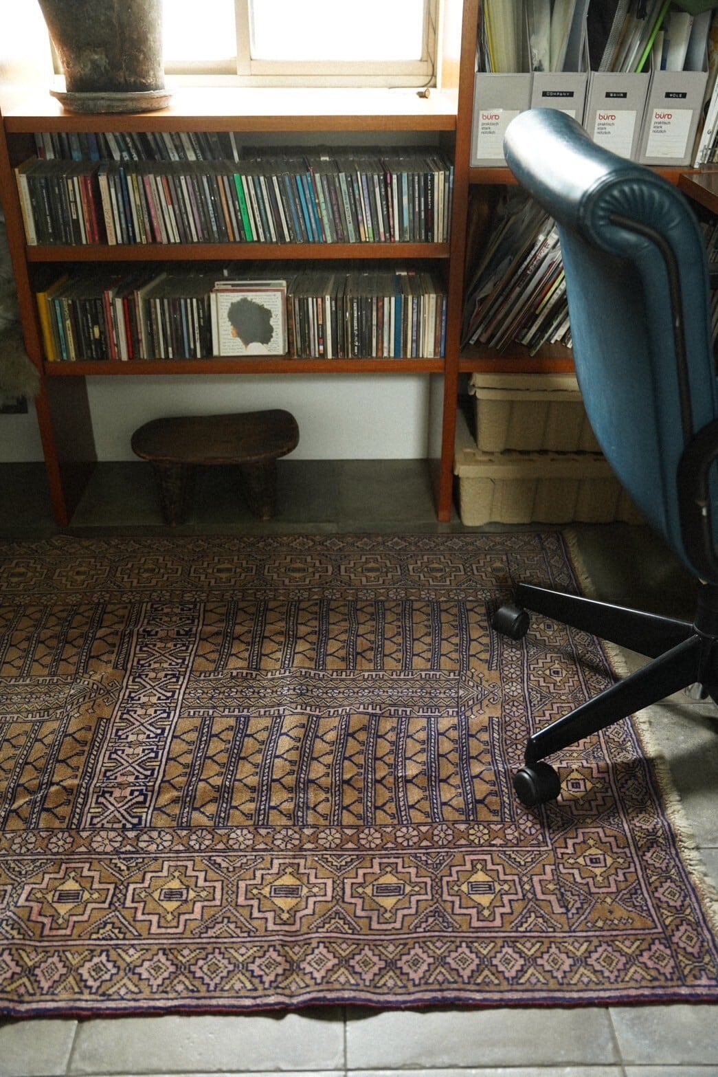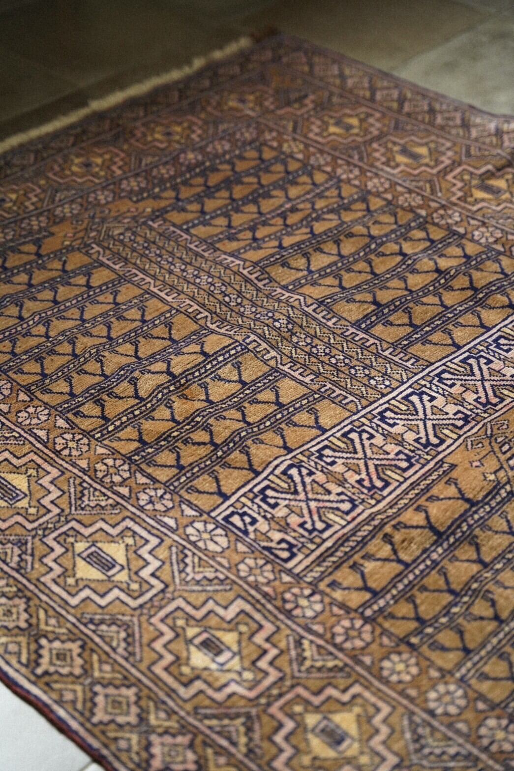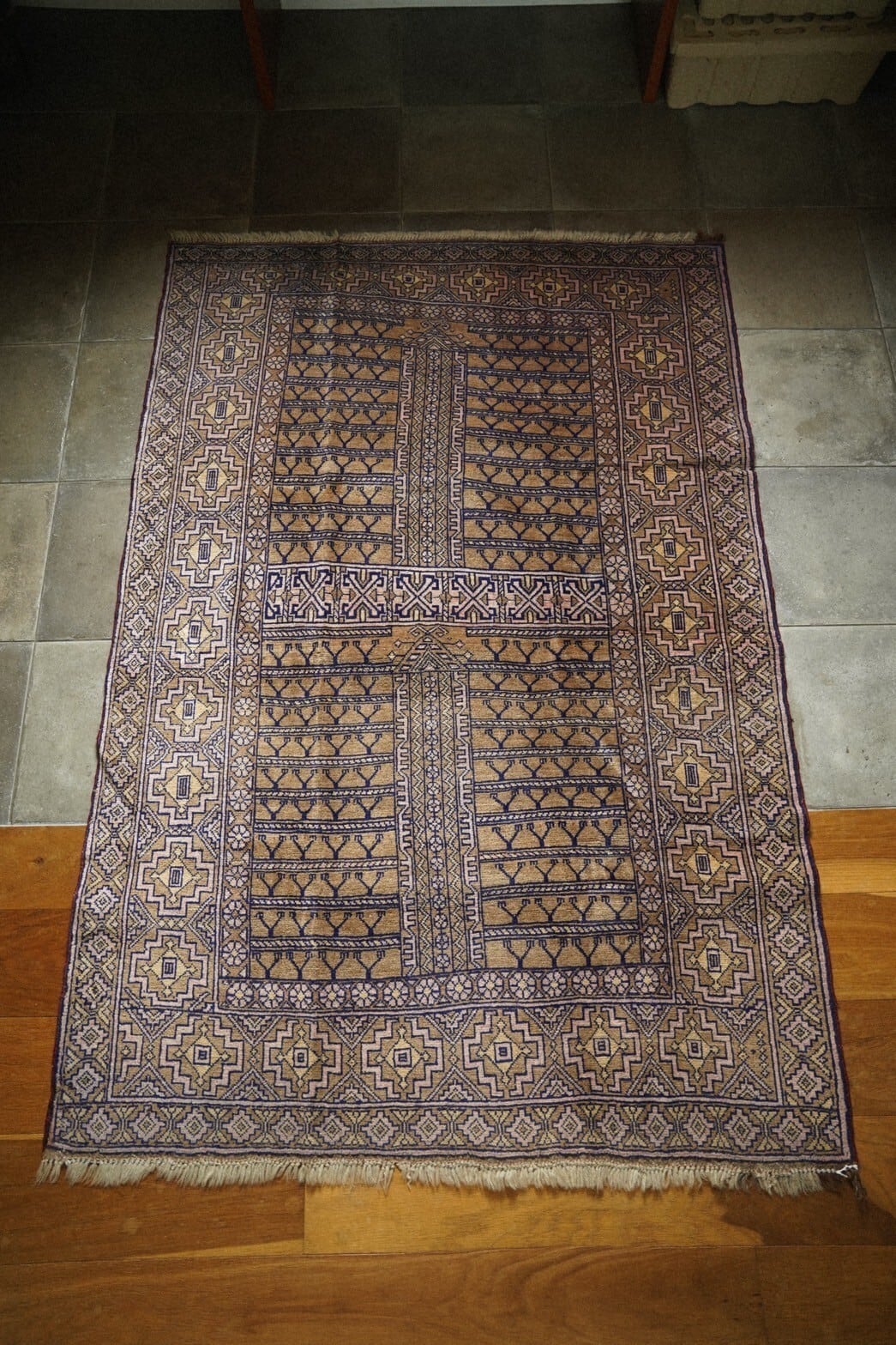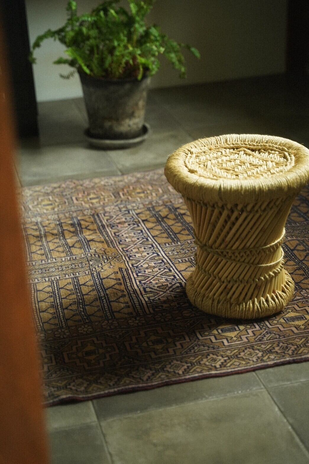 パイルは短めですが、密度の詰まった織りでしっかりと丈夫な作り。目立ったダメージはなくグッドコンディション。手織りラグ特有の歪みがあるため気になる方は画像にてご確認ください。