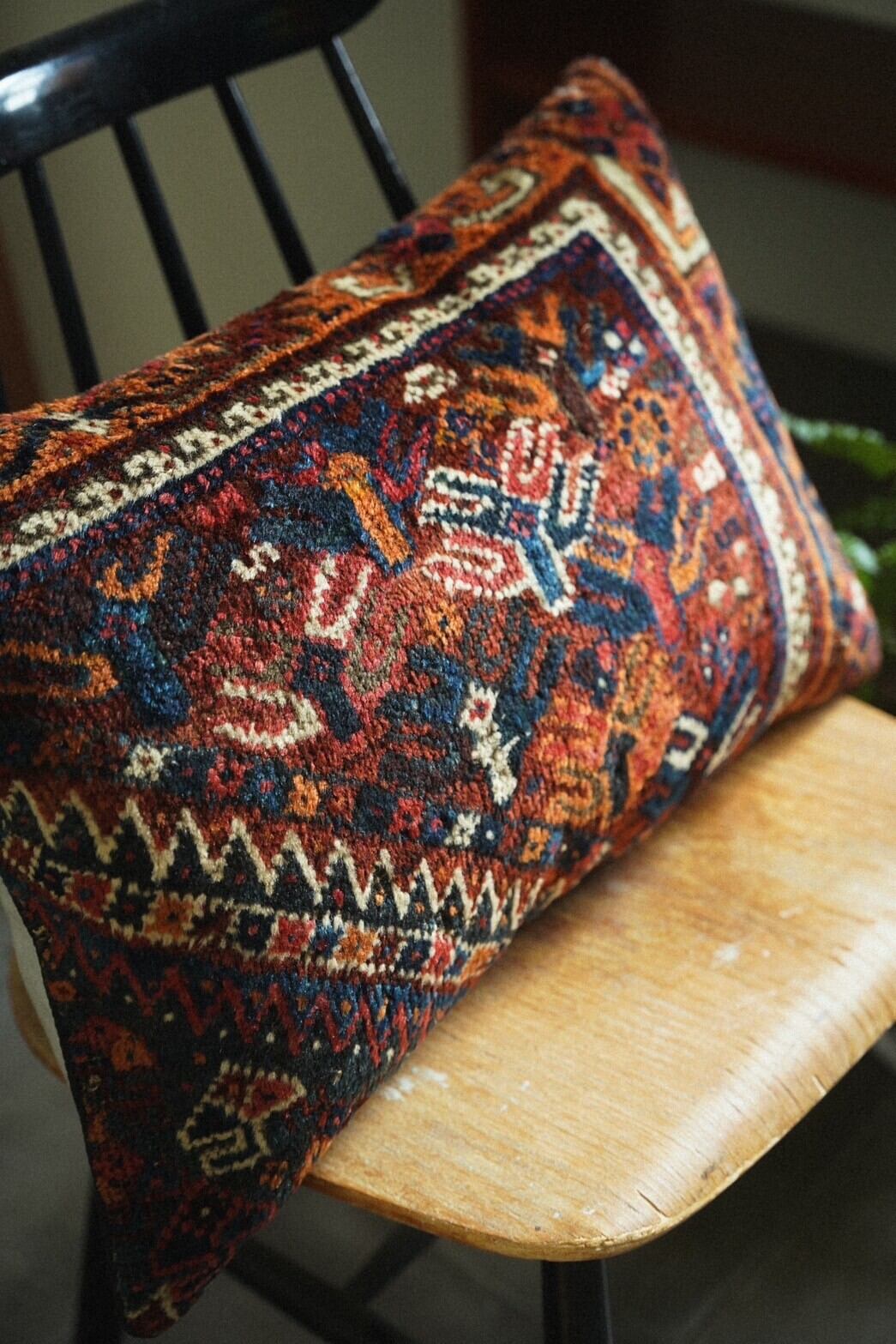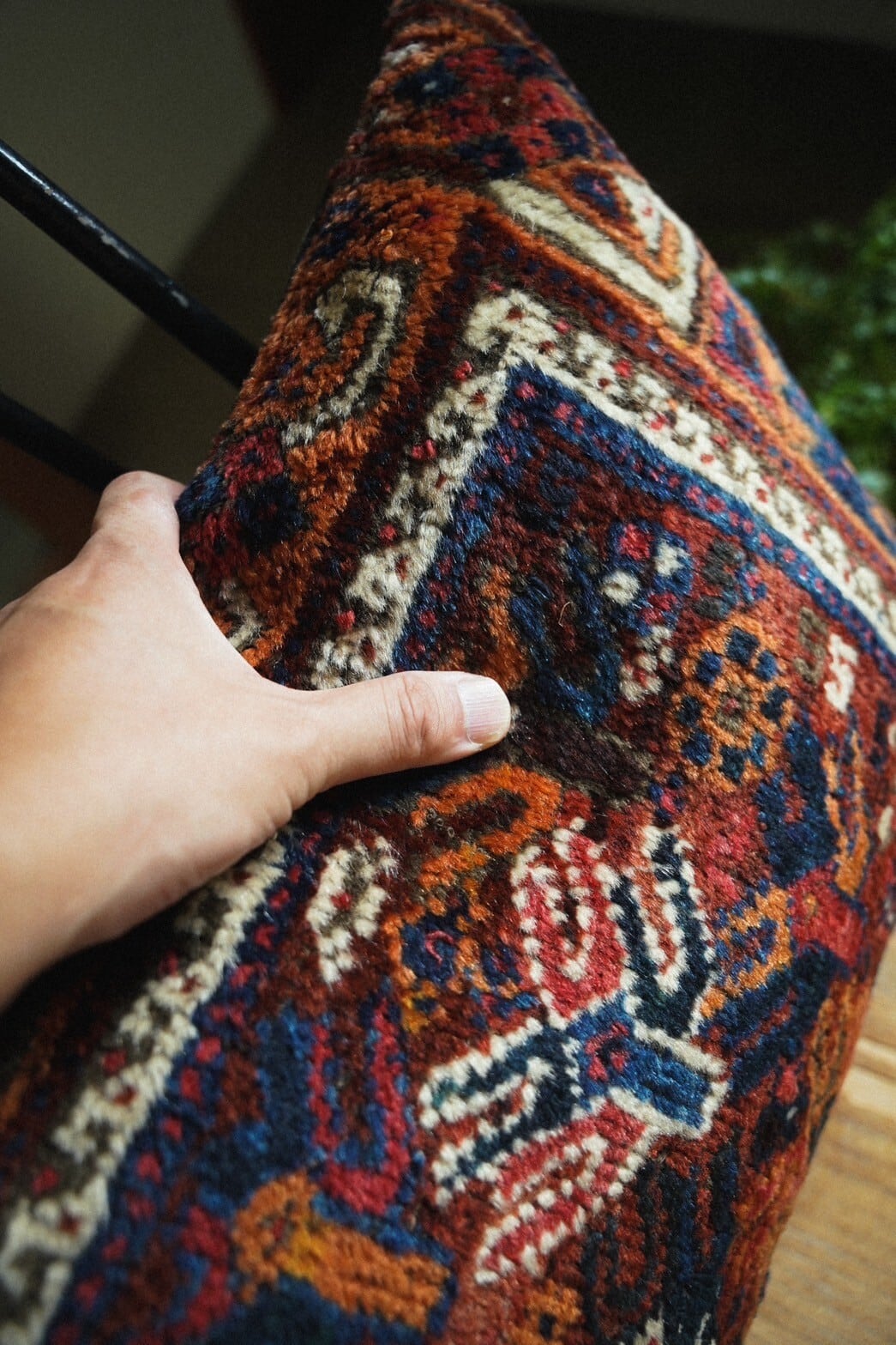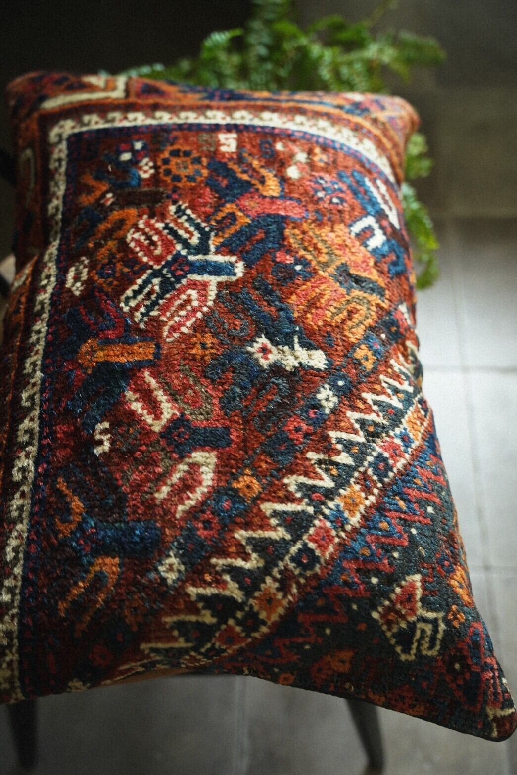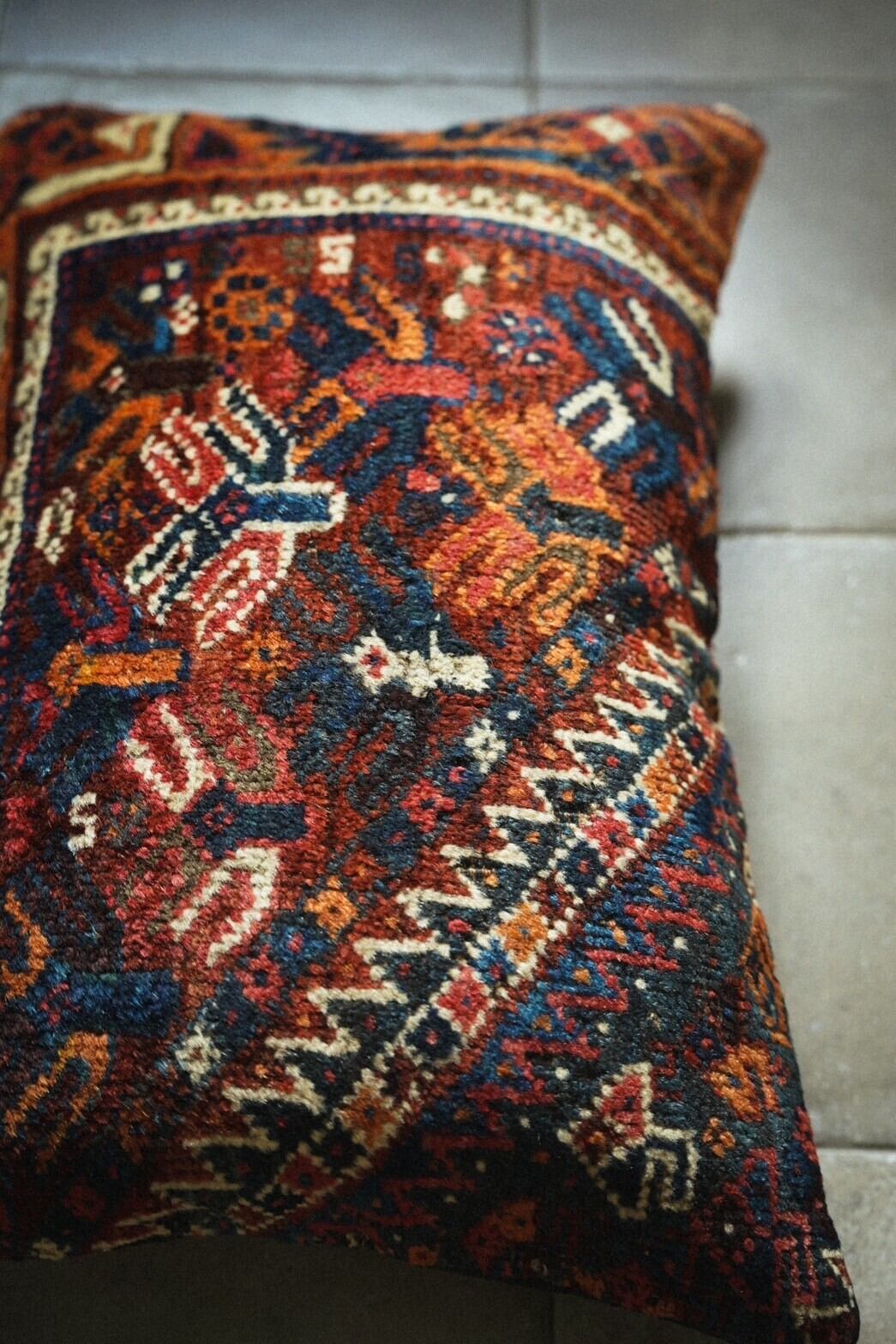 ハムセ連合の80年前のアンティークのラグを再利用して作られたクッションカバー。