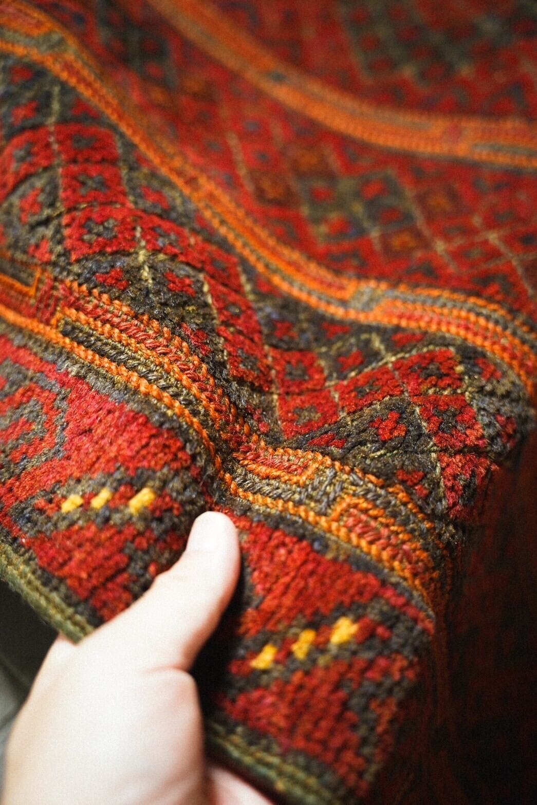 触り心地はしっとりとしており、キリム部分だけでなくパイル織との組み合わせのためチクチク感はありません。