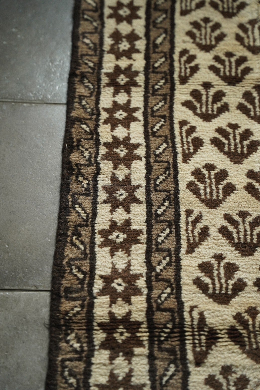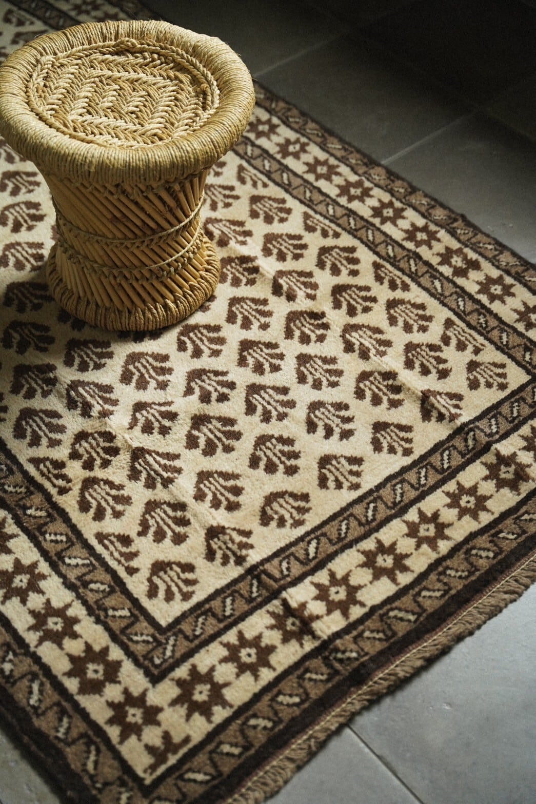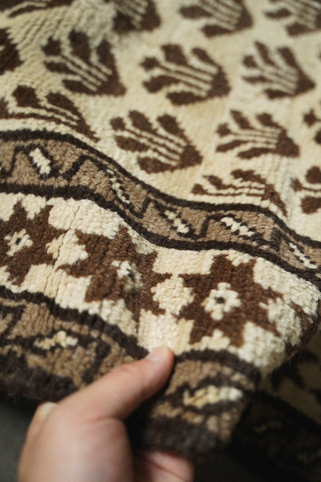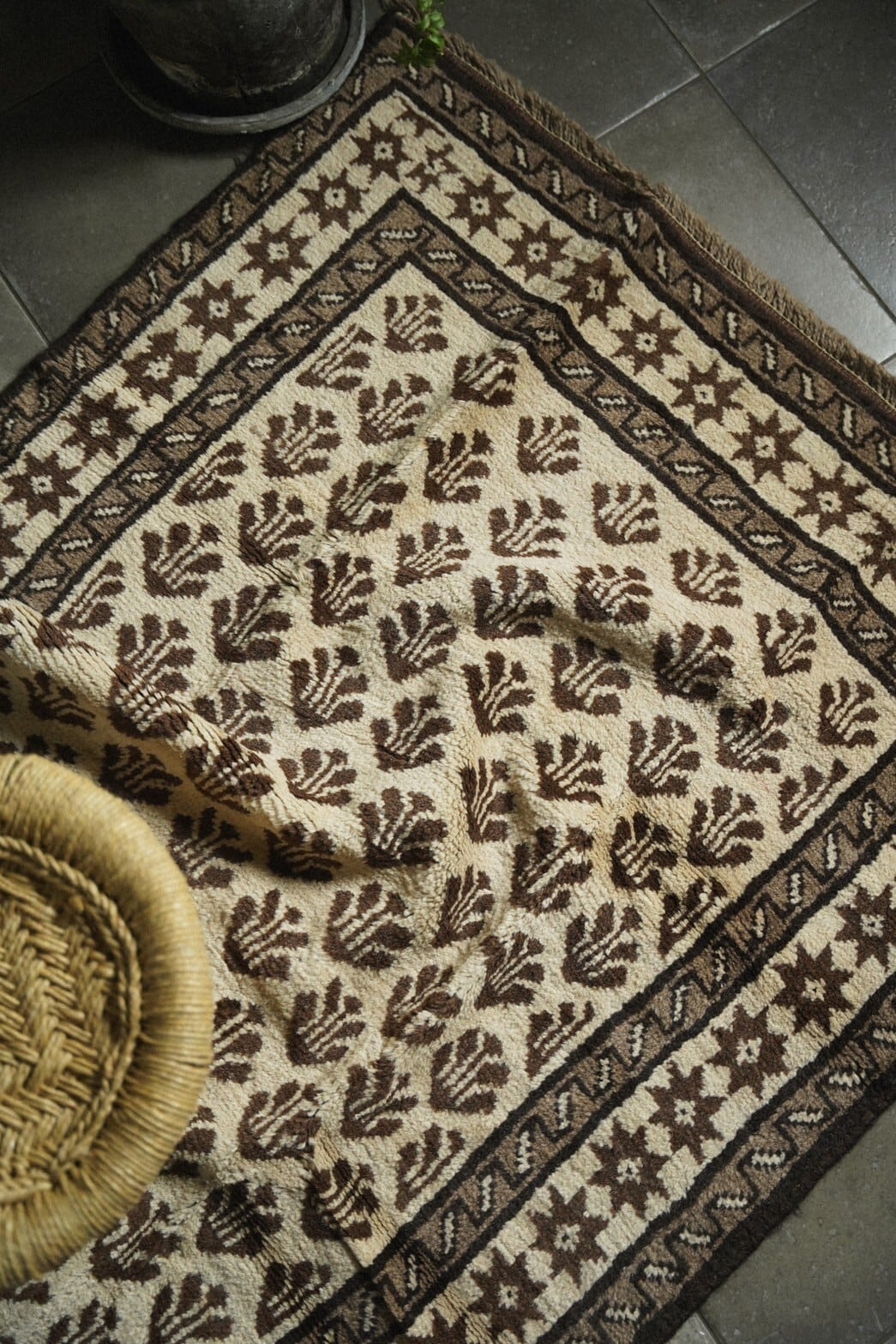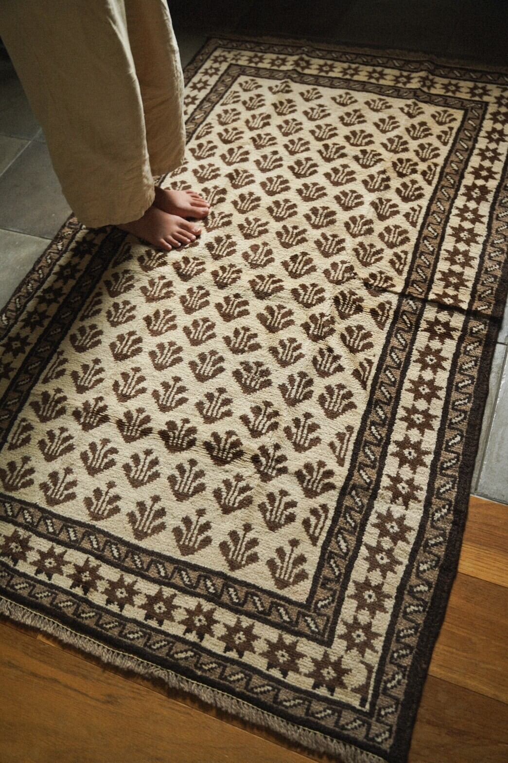 アイボリーベースにブラウンで描かれたお花と八芒星モチーフが素朴な雰囲気で、とても可愛らしい一枚。