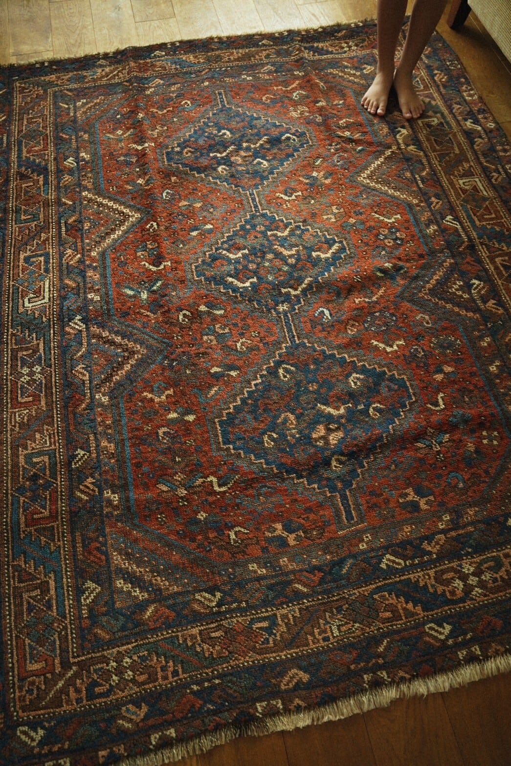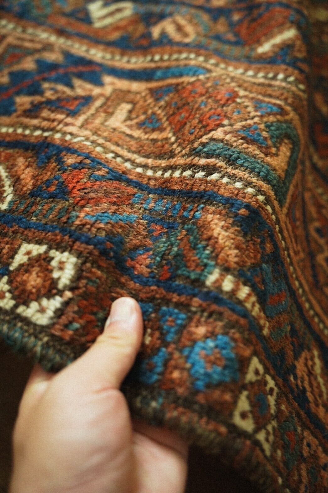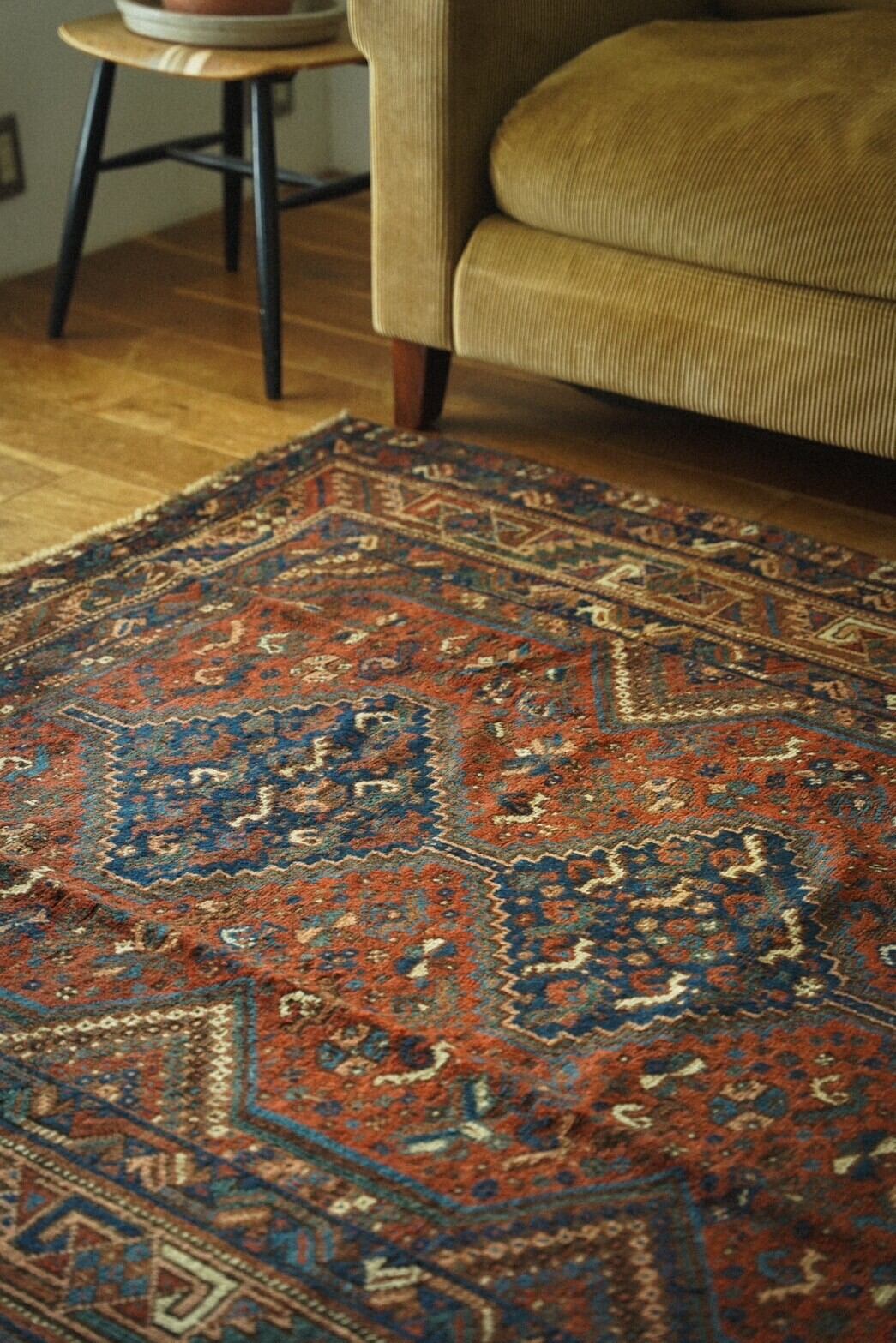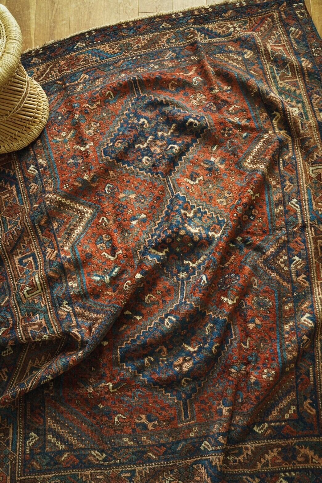 アンティークならではの味わい深い色味や風合い、鳥がお好きな方、一生物のラグをお探しの方におすすめの一枚です。
