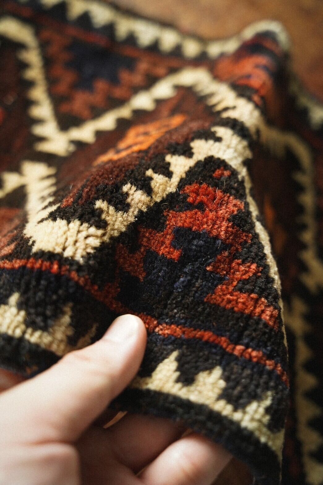 ネックバンドと呼ばれるラクダ用の飾りをミニラグに仕立ててもらいました。