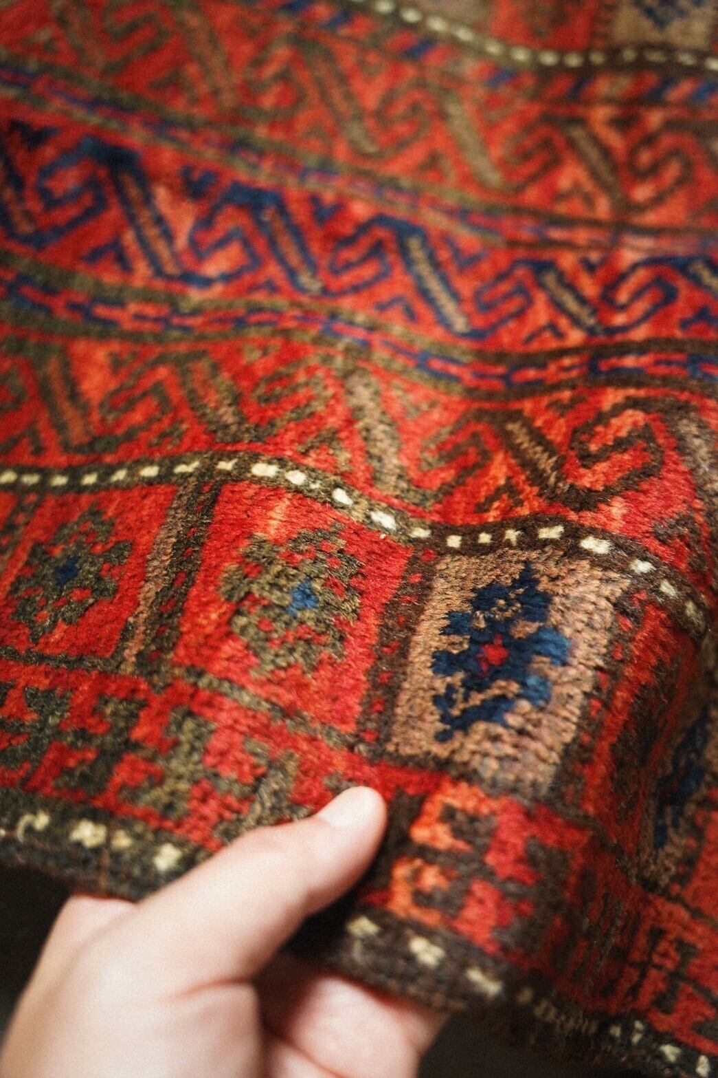 1940年代にシスタン地方に住むバルーチ族によって織られたバーリシトを一枚のラグに仕立ててもらいました。