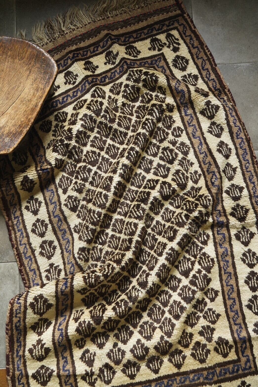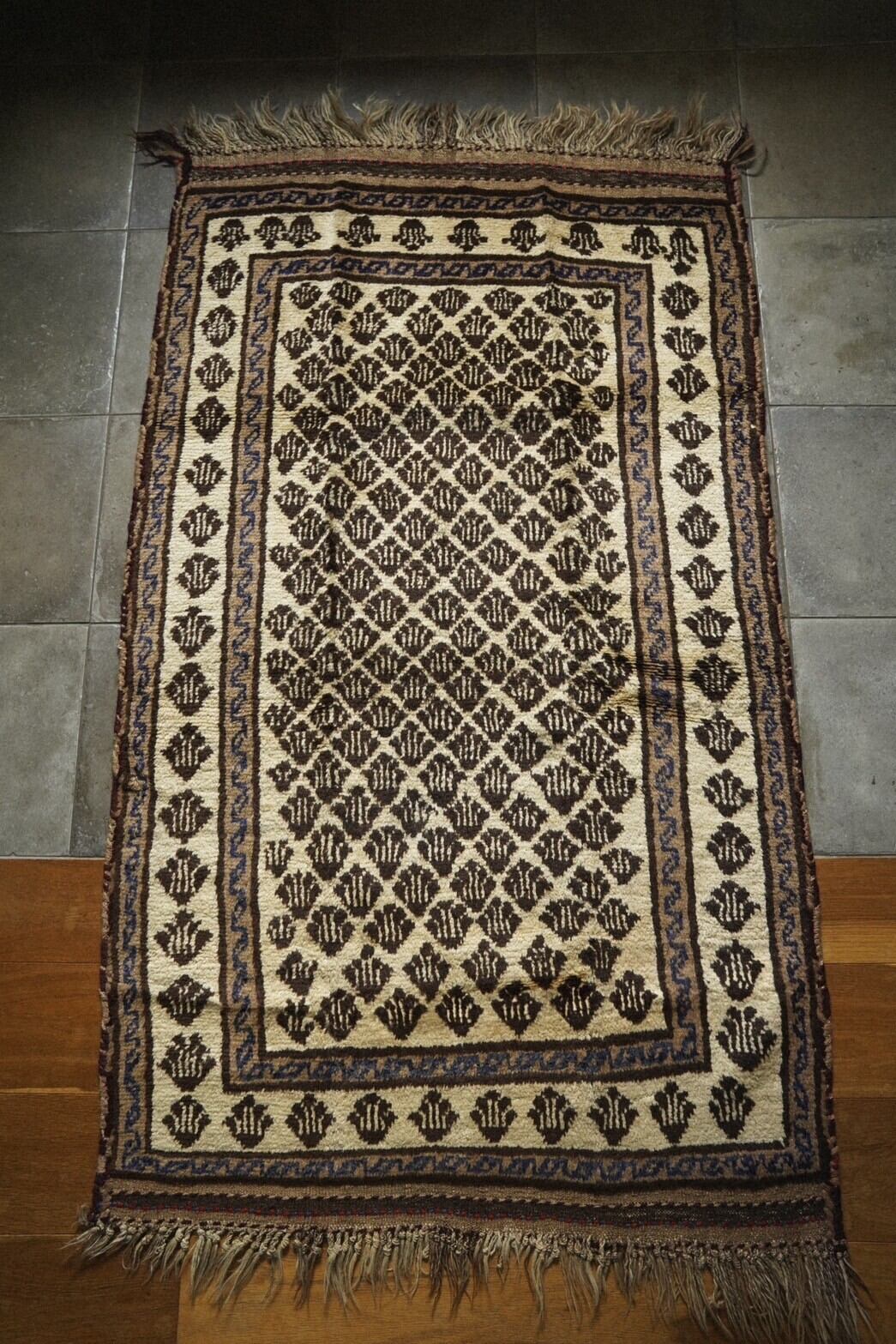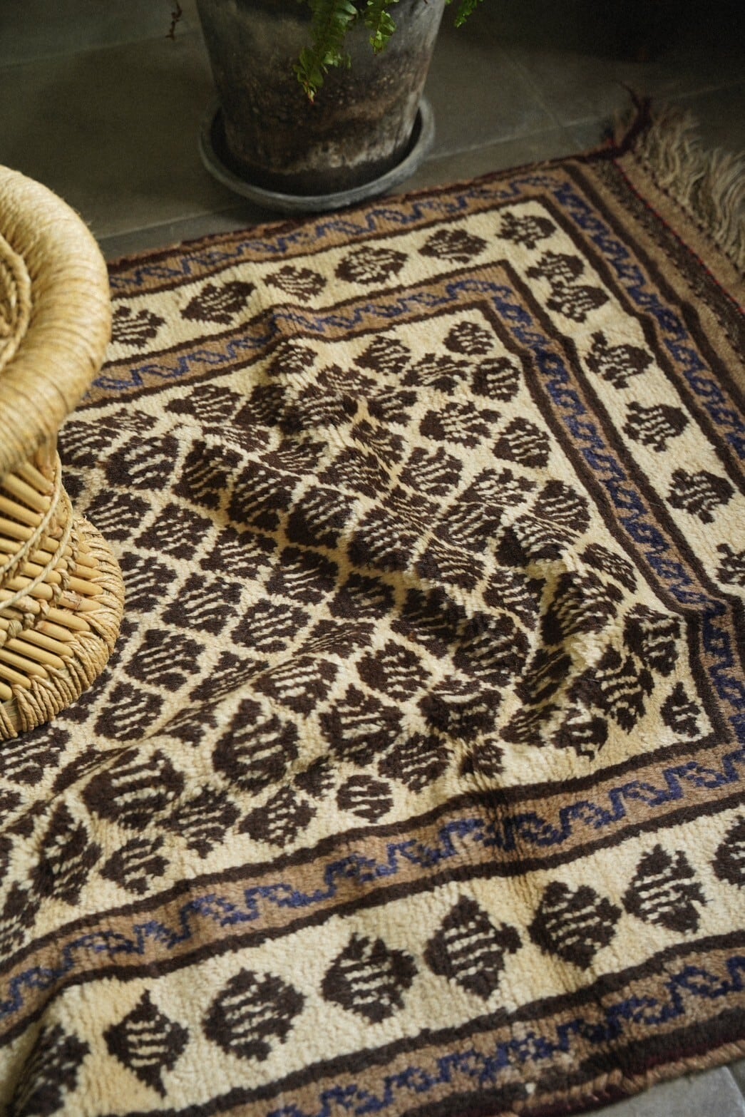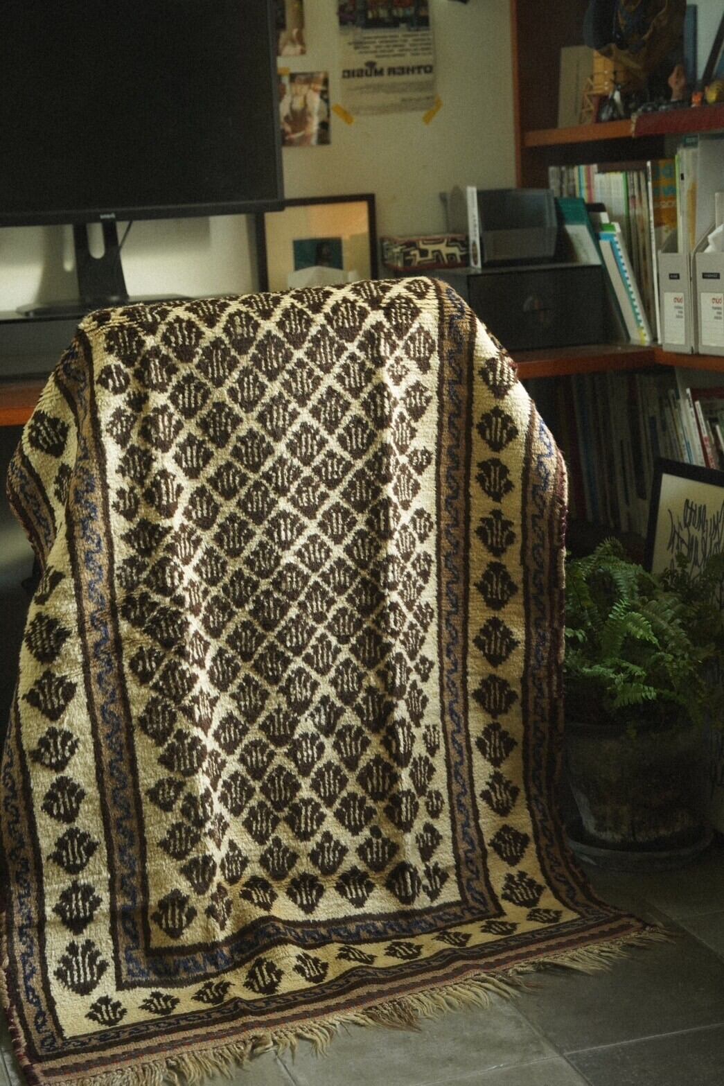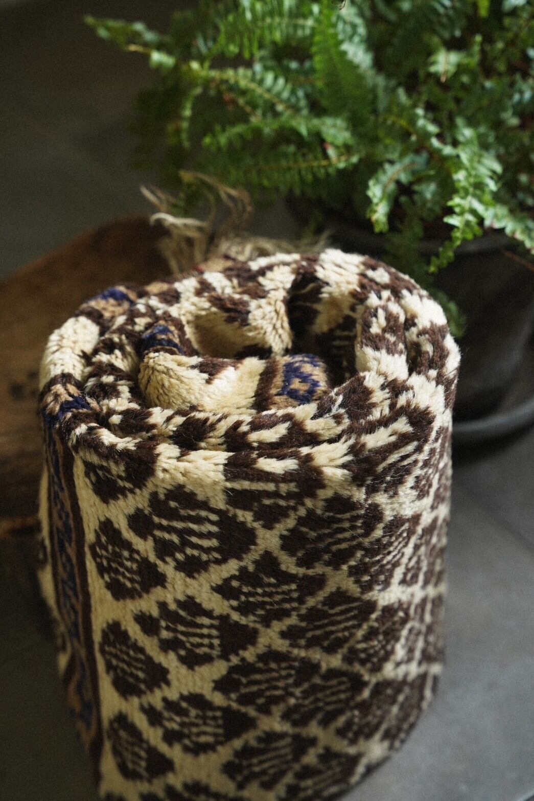 山岳地帯を遊牧しながら厳しい環境で生活するタイマニ族が織ったラグは秋冬にぴったりな温かくてフカフカな手触り。