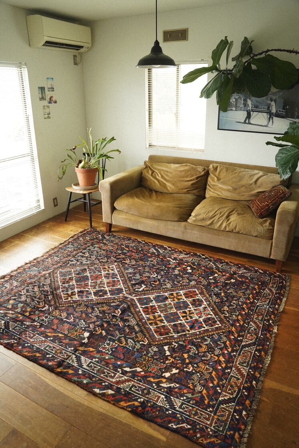 リビングやソファ前、ダイニングテーブルの下や書斎などにおすすめのサイズ感です。