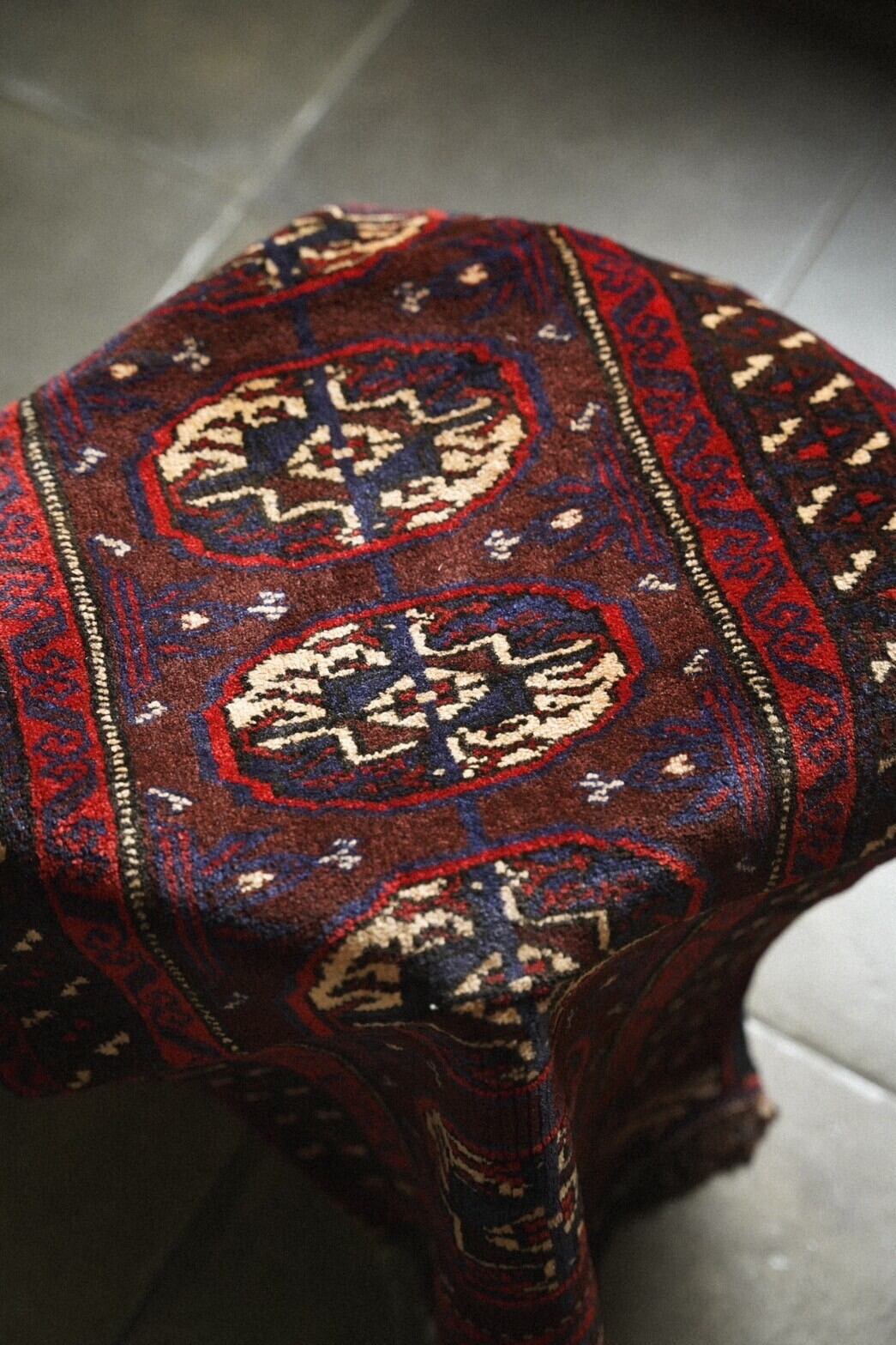 バーリシトと呼ばれる家財や食材を入れたり、屋内ではクッションとして使用される袋状のものをラグに仕立ててもらいました。