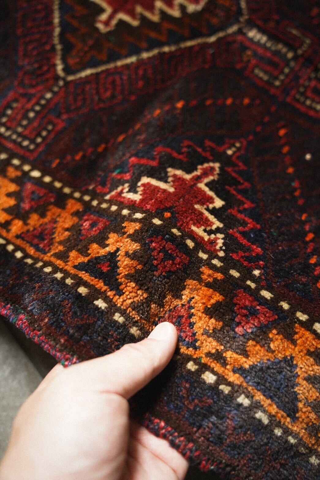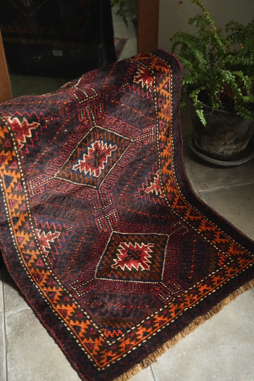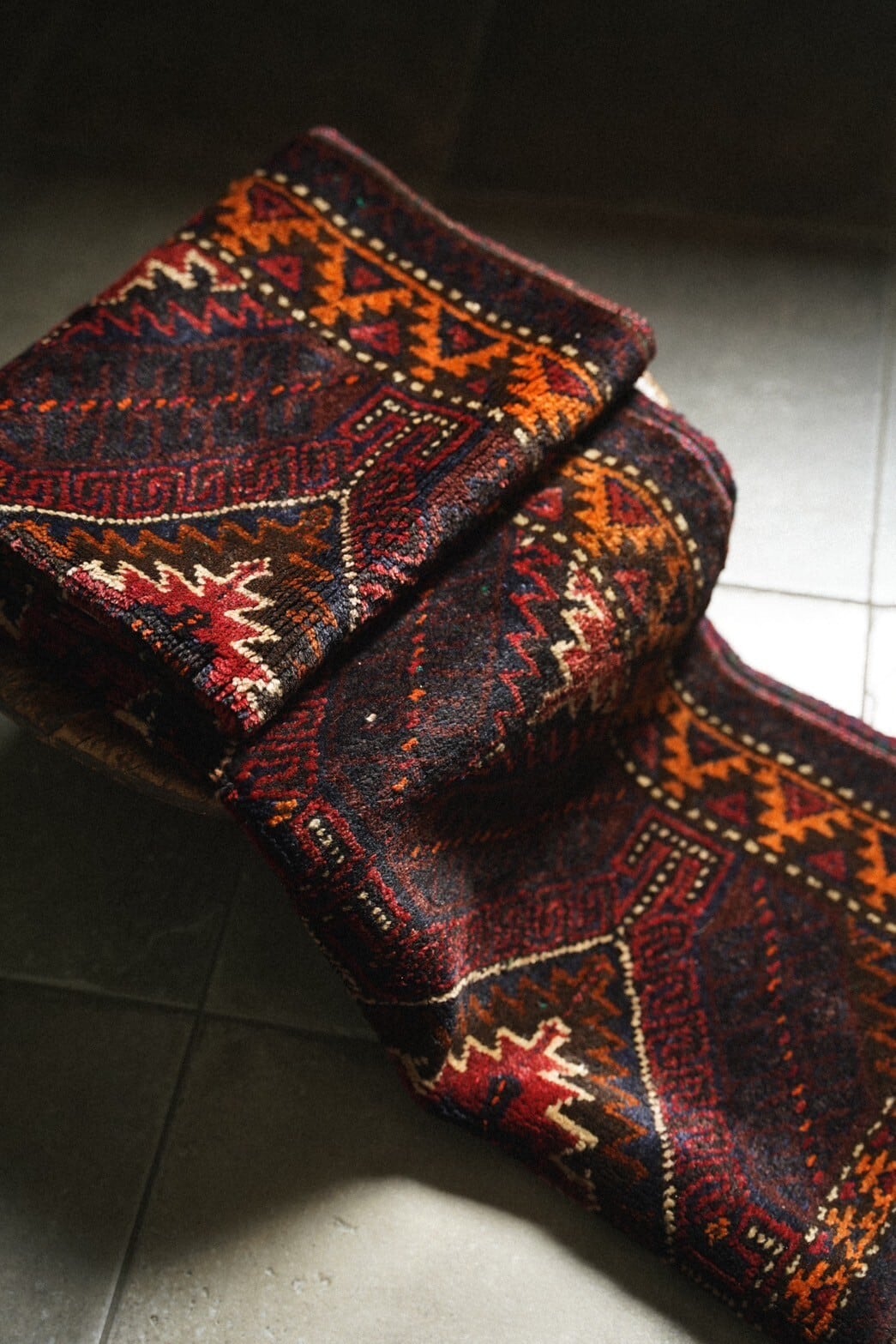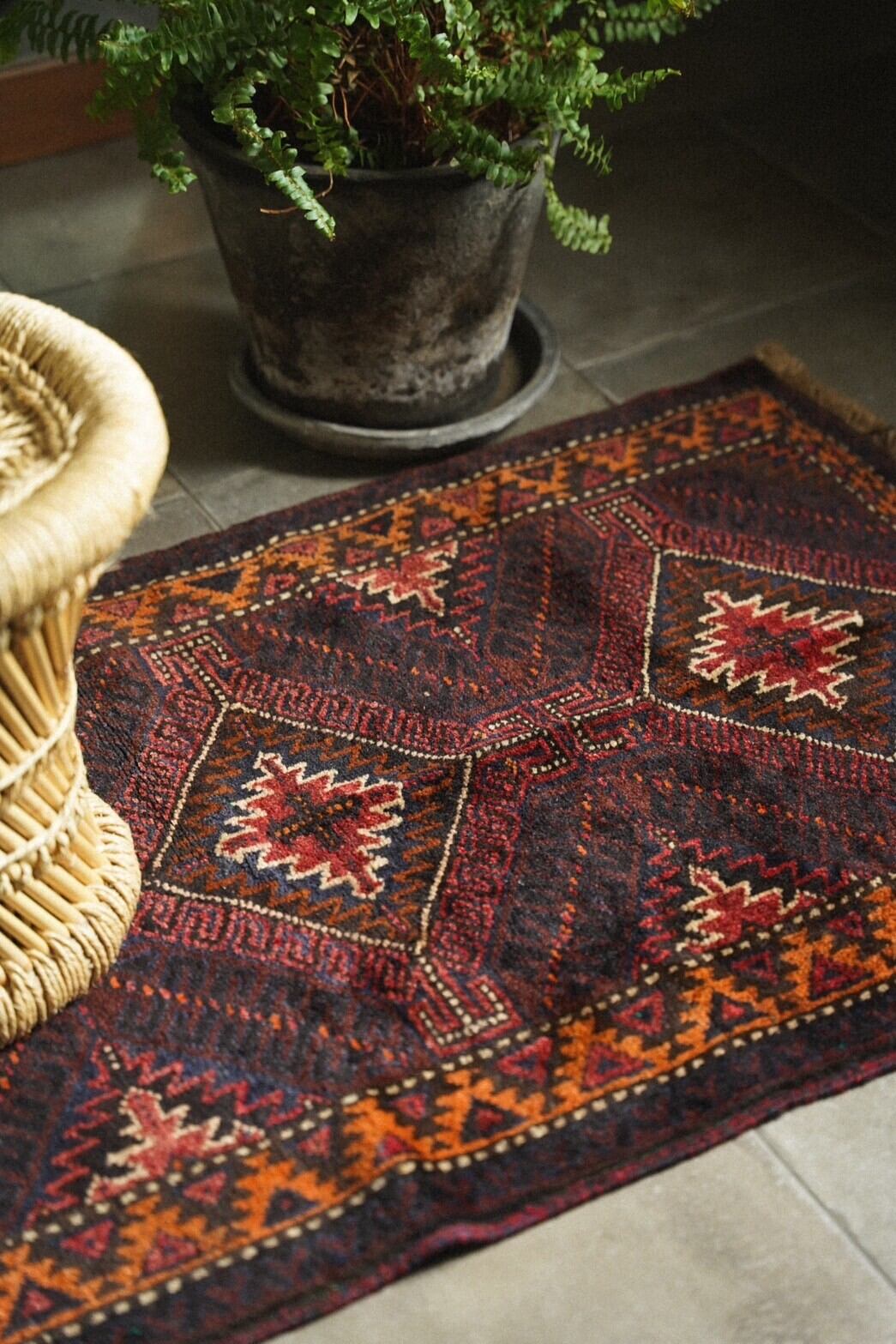 1960年代にバルーチ族によって織られたバーリシトと呼ばれる家財や食材を入れたり、屋内ではクッションとして使用される袋状のものをラグに仕立ててもらいました。