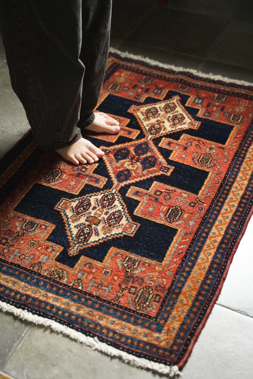 そしてセネラグの特徴である細かくしっかりとした織りは肉厚で床の冷たさを通しません。パイルは短めにカットされデザインと色彩がくっきりと浮かび上がってきます。