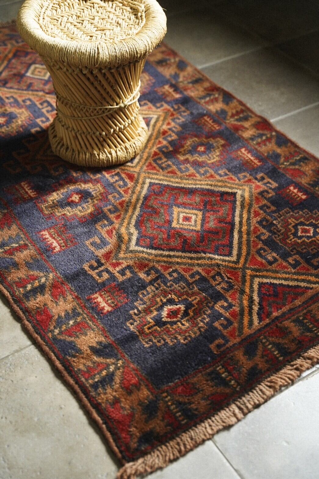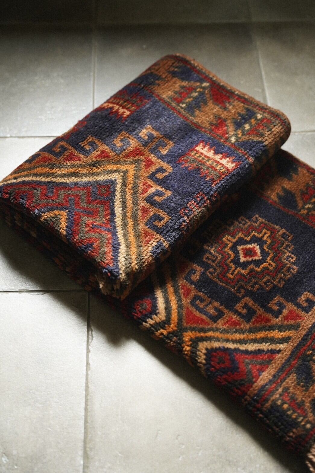 パイルは山岳地帯で暮らすタイマニ族ならではの柔らかく良質なウールで、肌触りもとても気持ち良いです。フカフカとした程よい厚みもあり、寒い季節にもぴったりです。状態も良くパーフェクトコンディション。