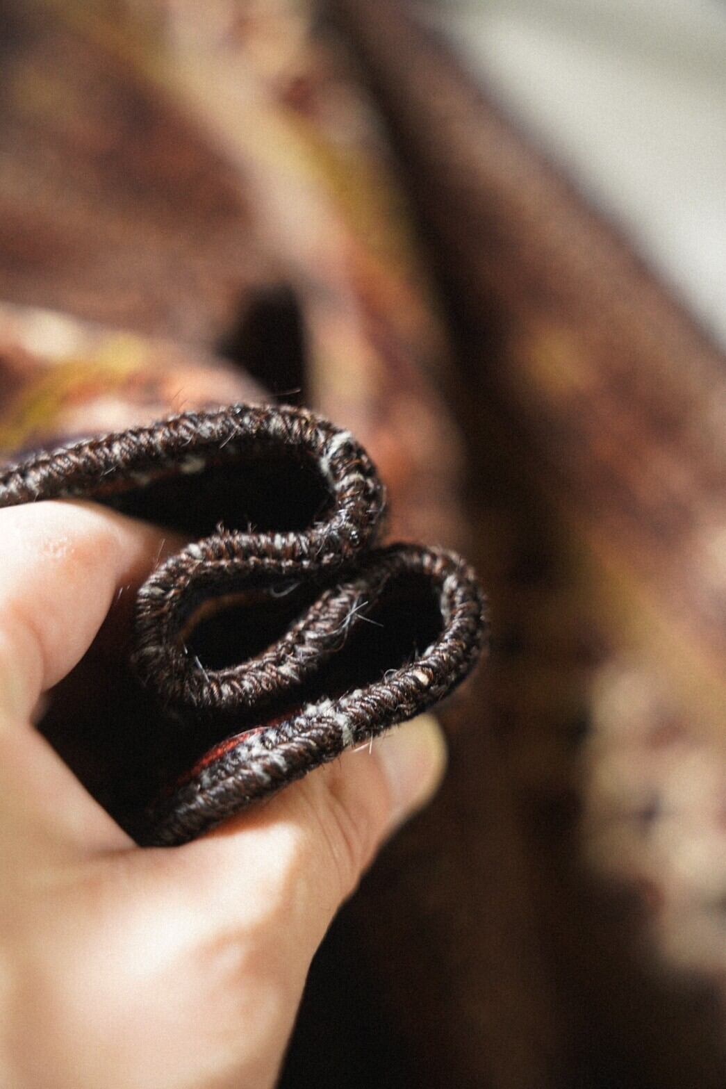 ボーダー部分も何層にもなっており、隅々まで凝ったデザインに織り手のセンスを感じます。