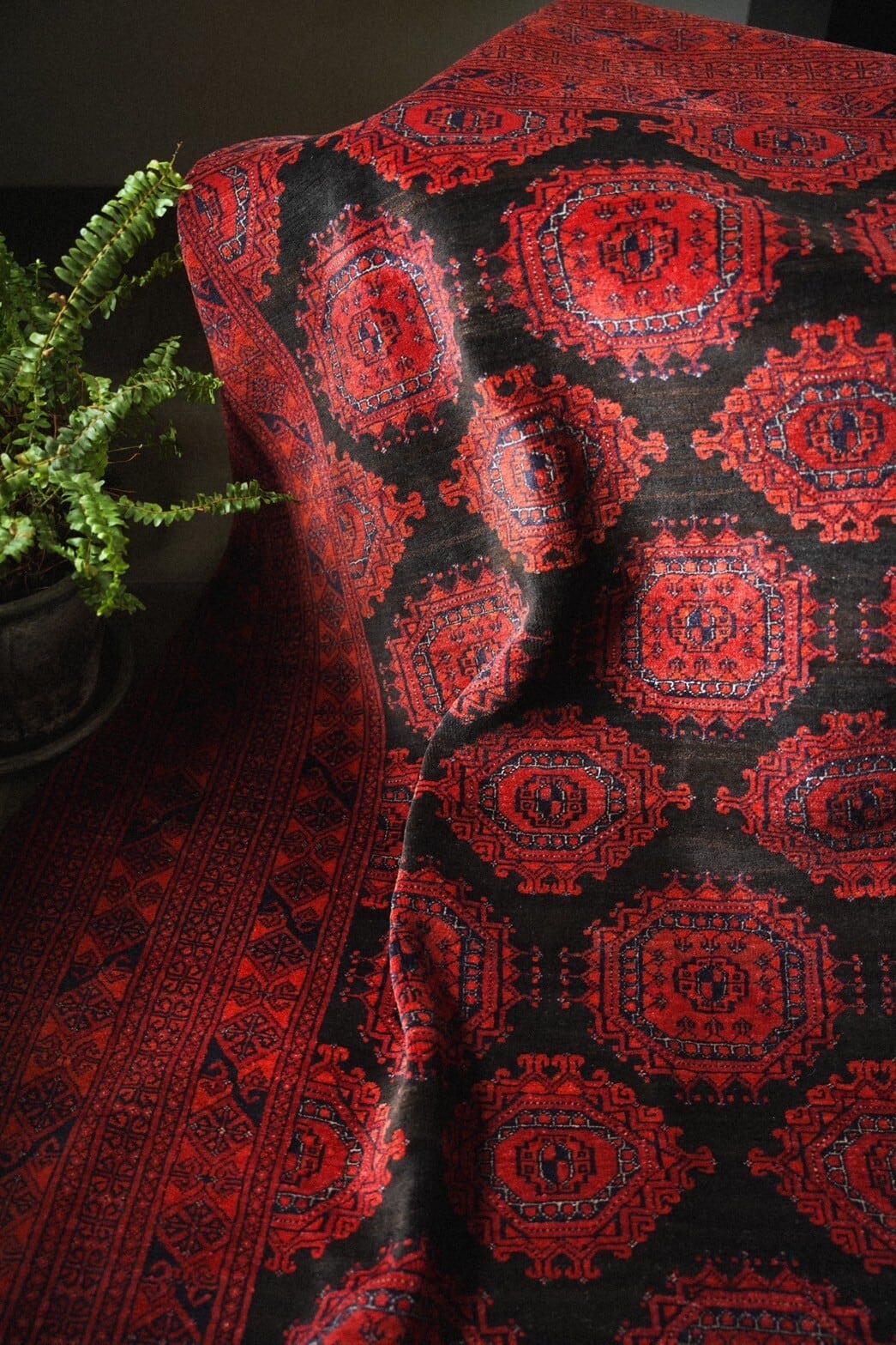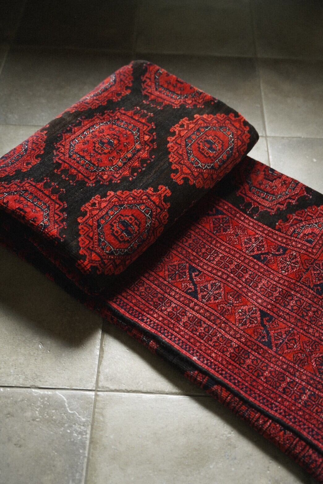 トルクメンラグらしい密度の詰まった織りで、滑らかで柔らかいウールがとても気持ち良いです。