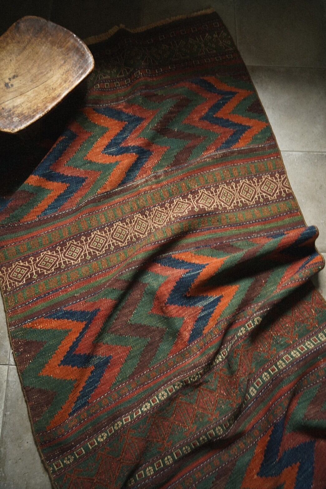イラン南東部~アフガン南西部のシスターンに暮らすバルーチ族によって100年程前に織られたソフレ(食卓布)と呼ばれるキリム。