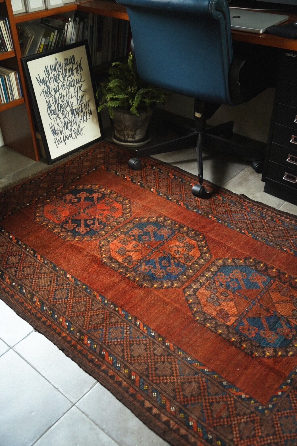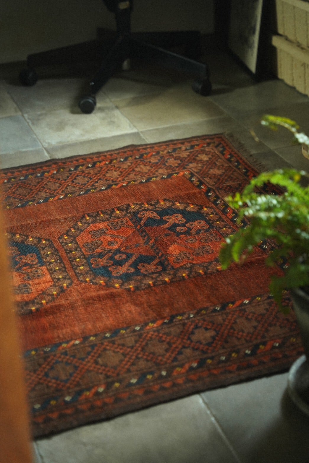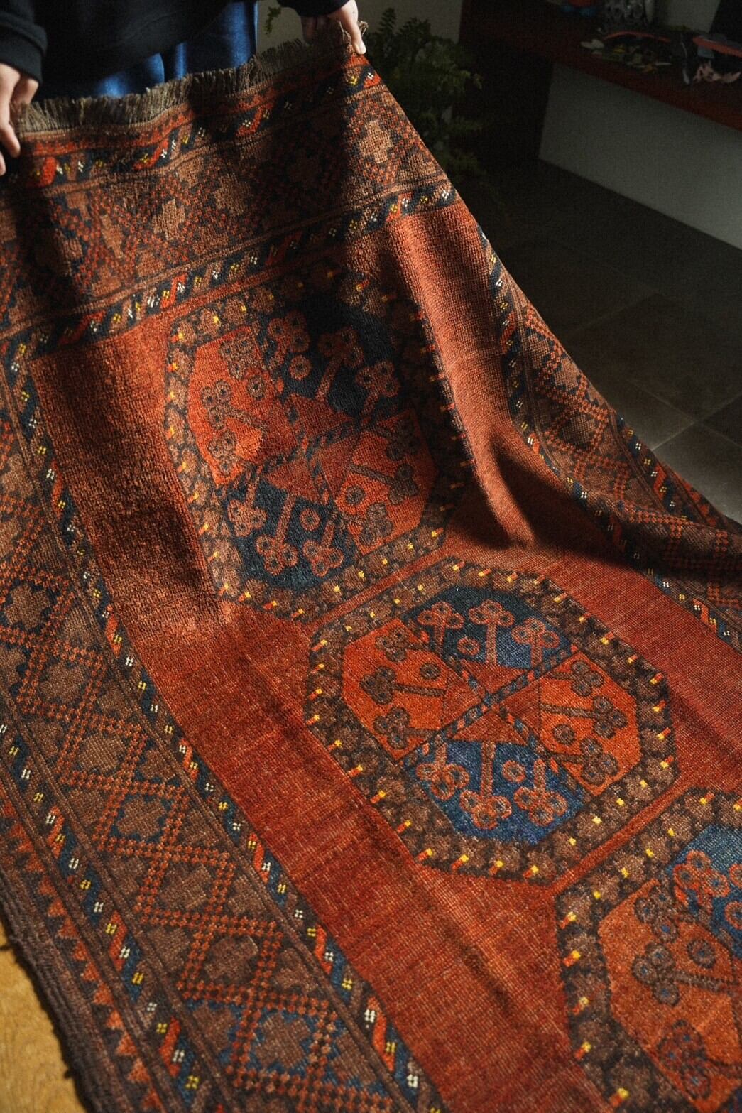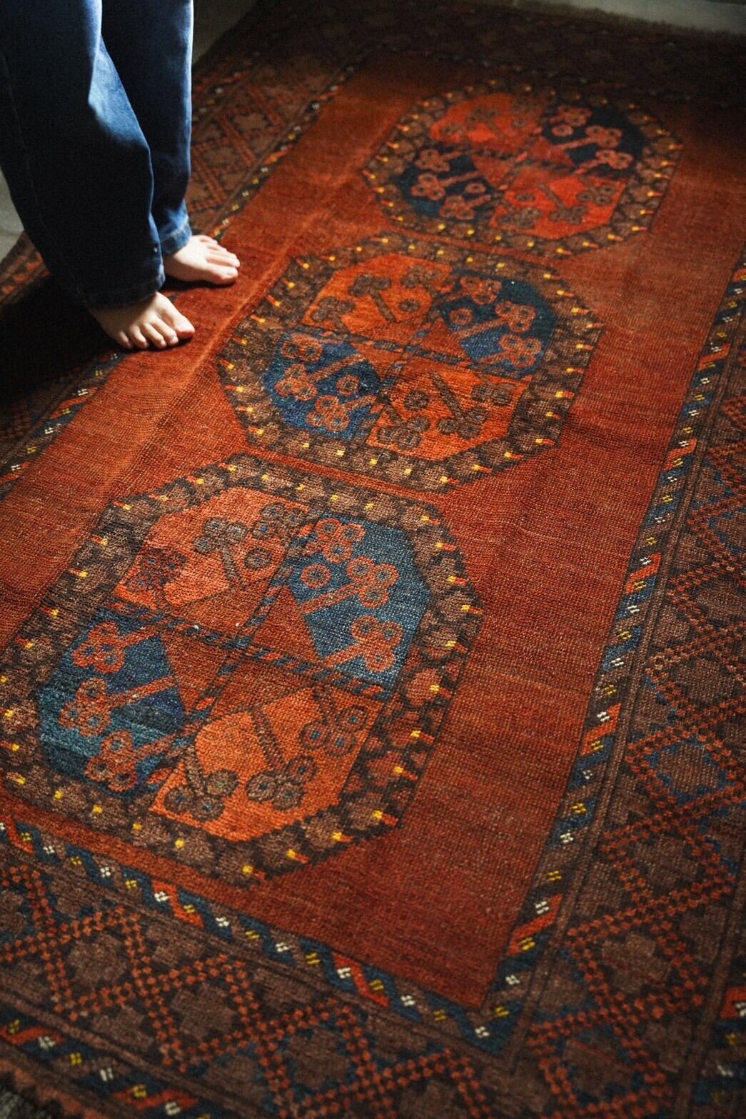 敷くだけで空間が格上げされるような特別な存在感のあるアンティークラグ。