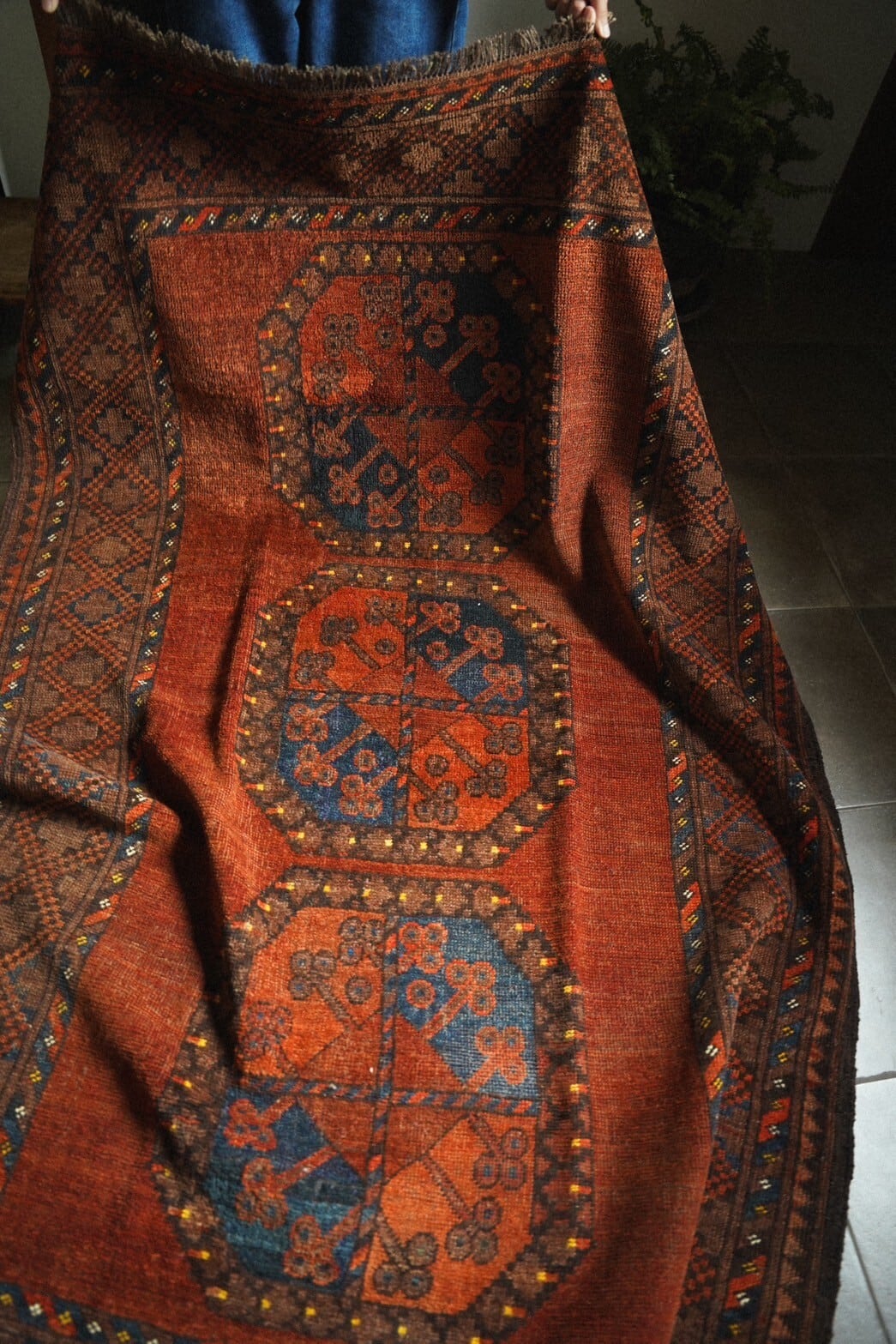 赤いトルクメンラグの美しさをたっぷりと堪能してください。