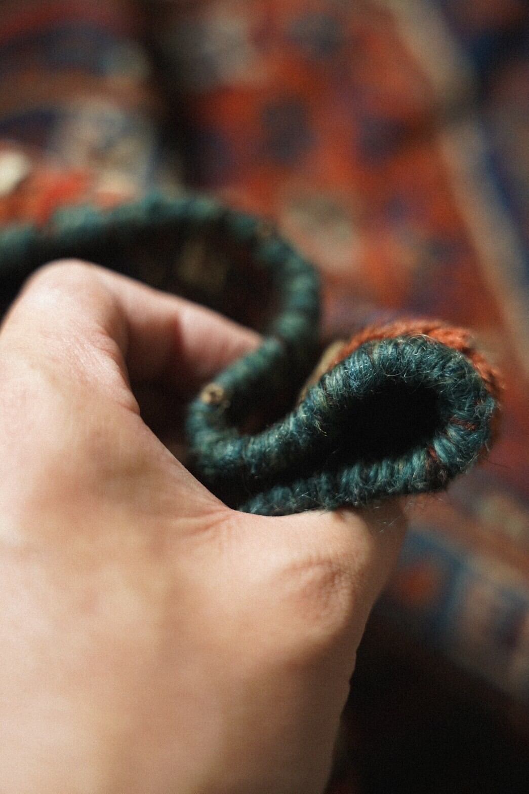 彩り豊かに描かれたモチーフたちは絨毯をじっと見つめていると動き出しそうな躍動感を感じます。