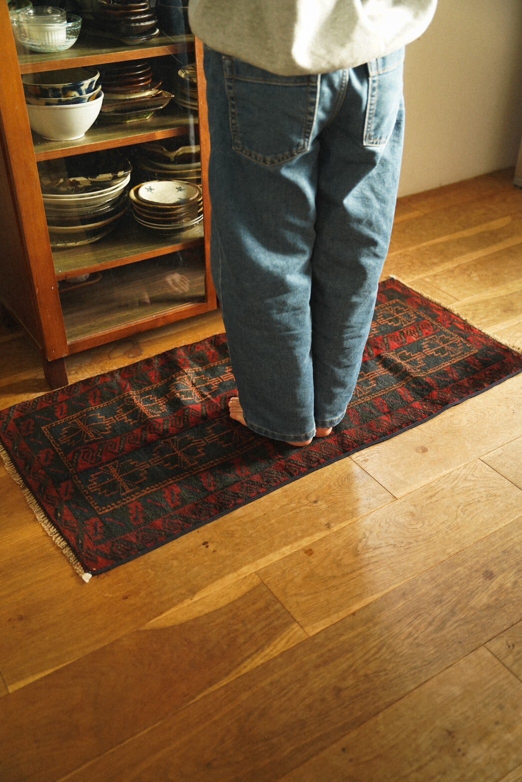 バーリシトと呼ばれる家財や食材を入れたり、屋内ではクッションとして使用される袋状のものをラグに仕立ててもらいました。