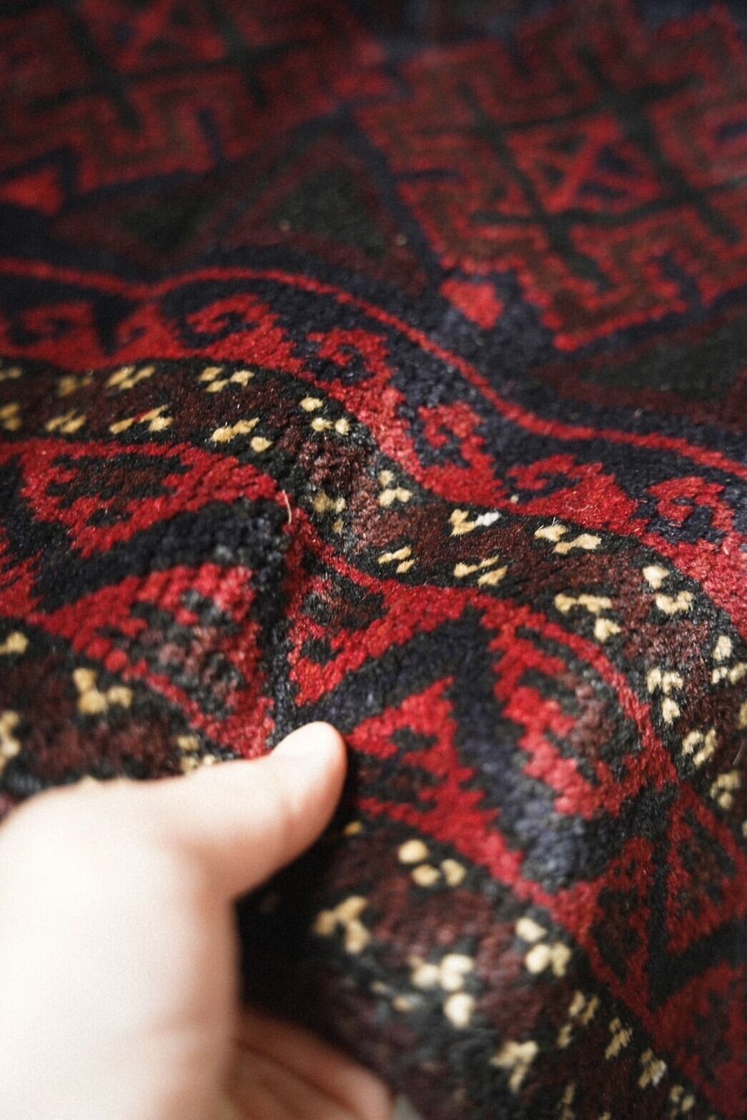 1960年代にバルーチ族によって織られたバーリシトと呼ばれる袋状のものをラグに仕立ててもらいました。