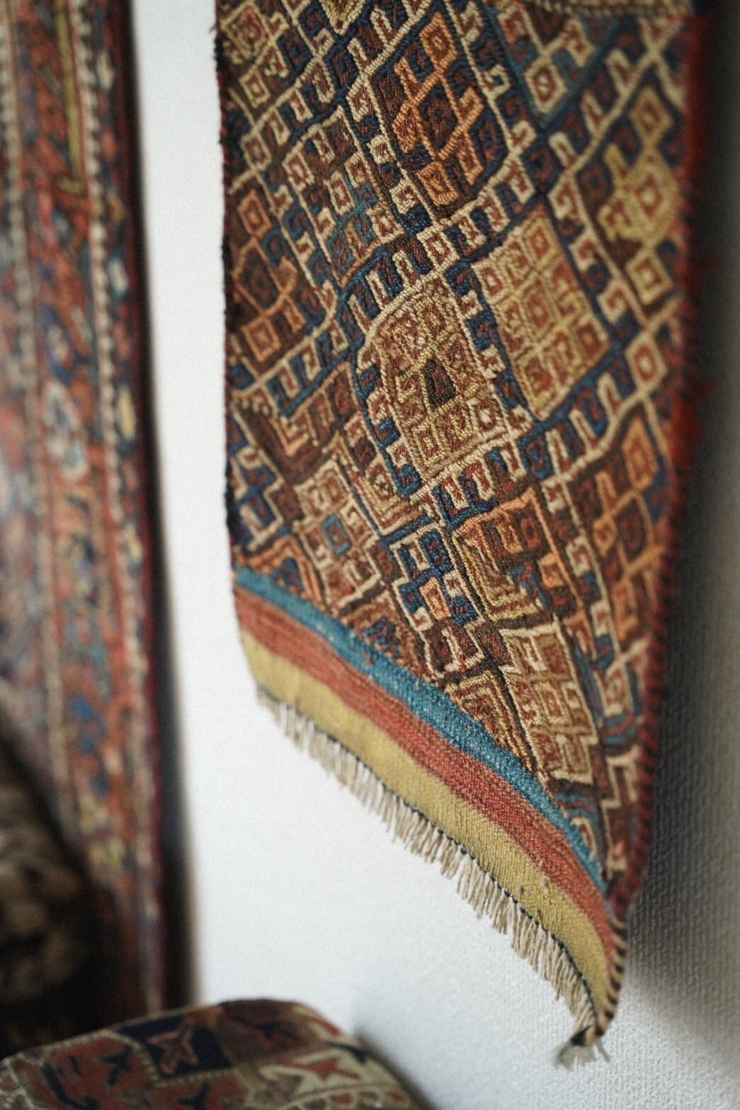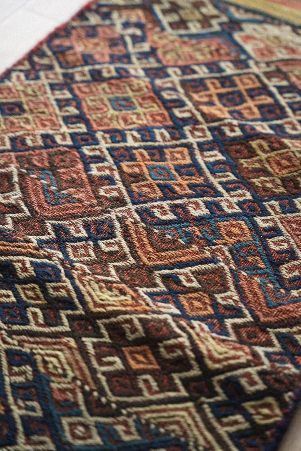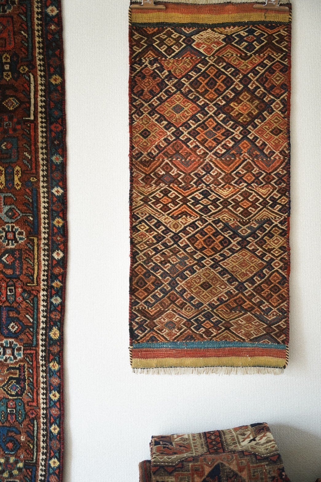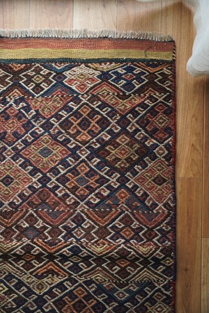 キリムエンドも経年により味わい深い色味になっており古い織物の魅力が詰まっています。
