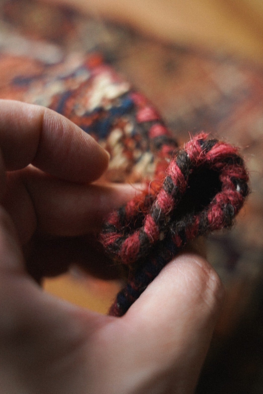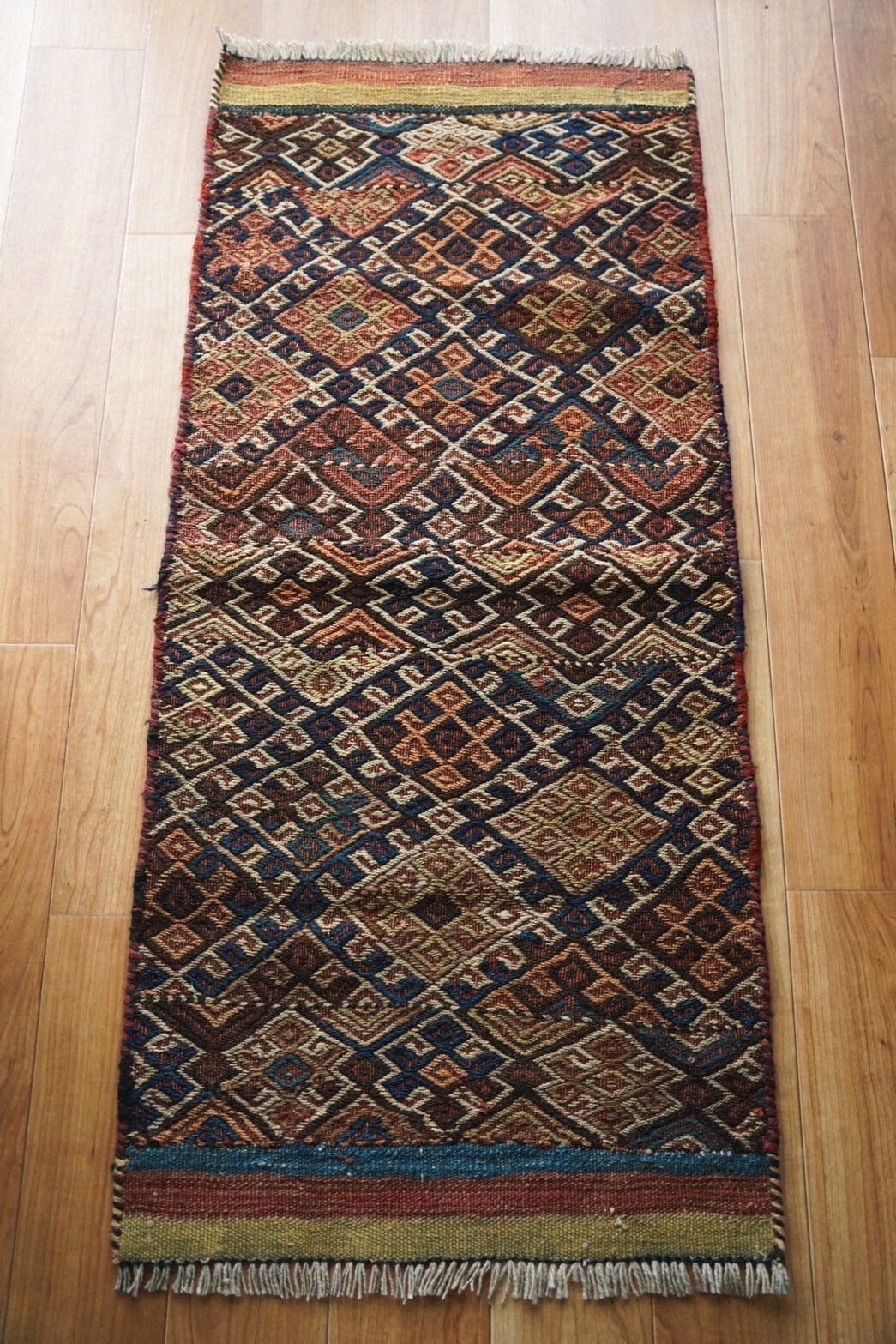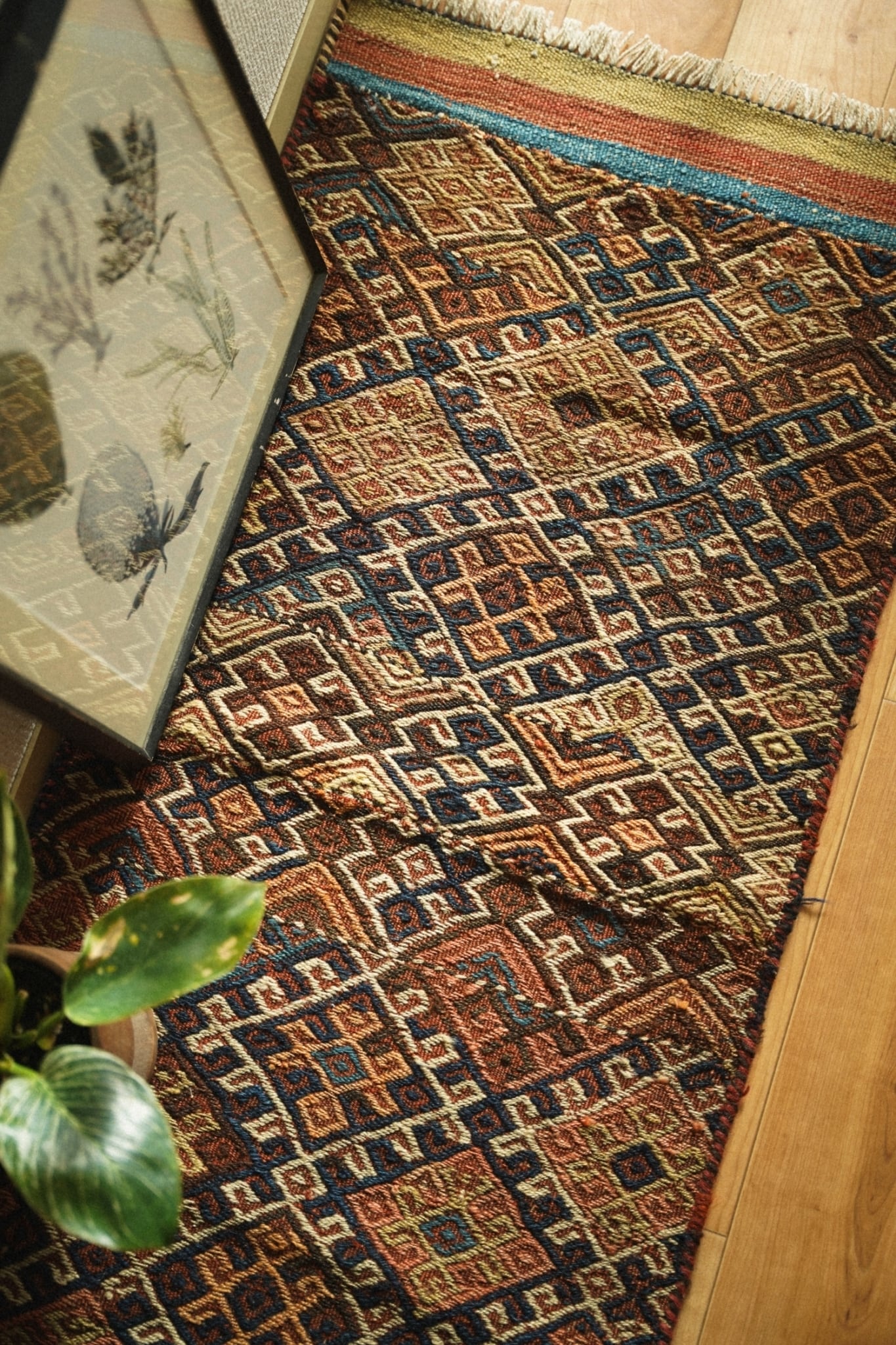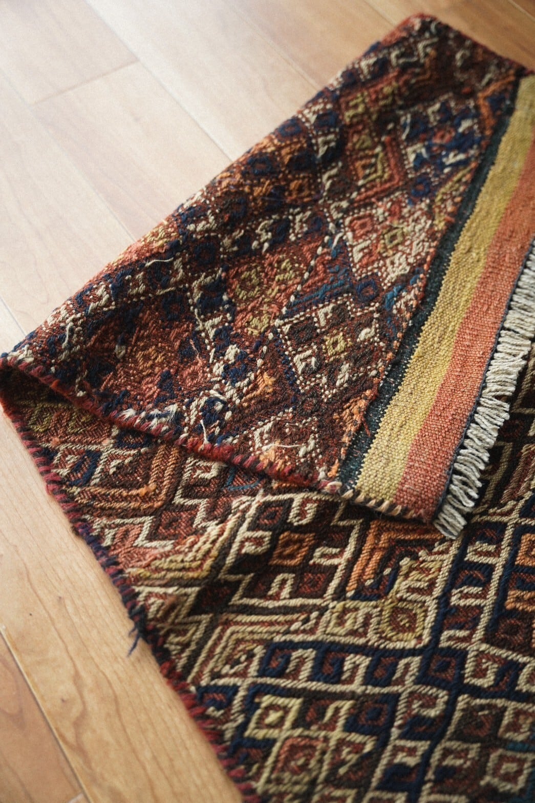 キリムエンドも経年により味わい深い色味になっており古い織物の魅力が詰まっています。