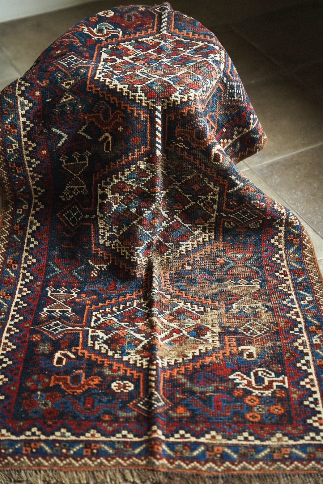擦れによるローパイルの箇所もございますが、アンティークラグの個性や魅力として状態や質感をご理解頂ける方へ。