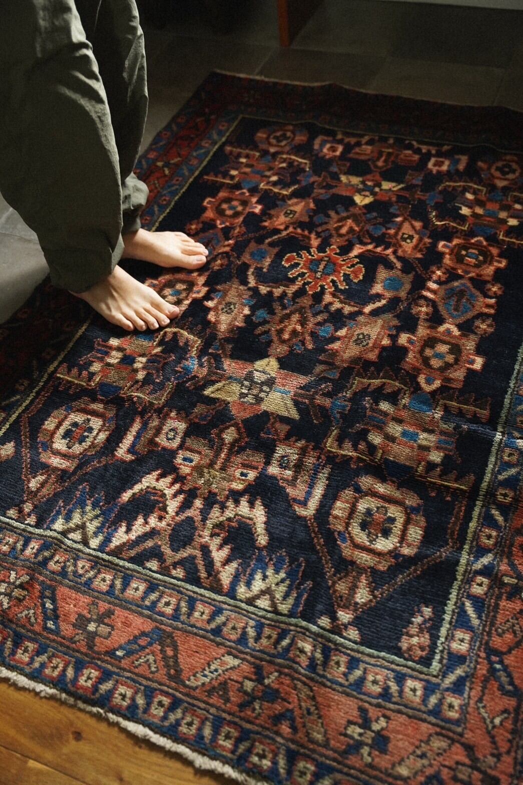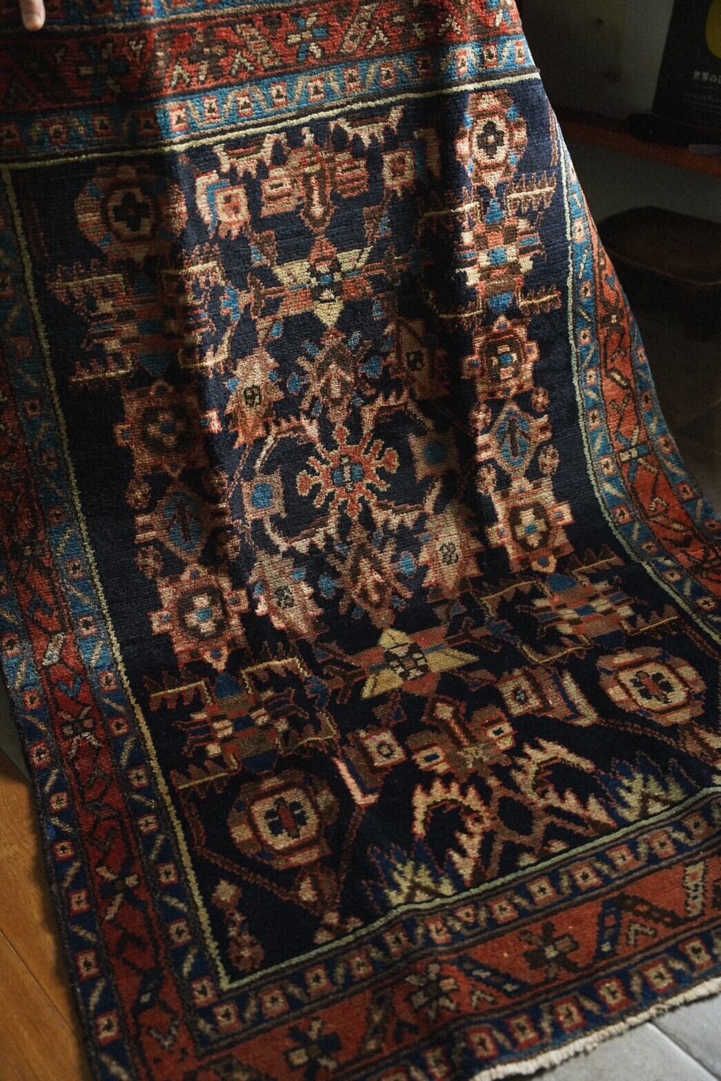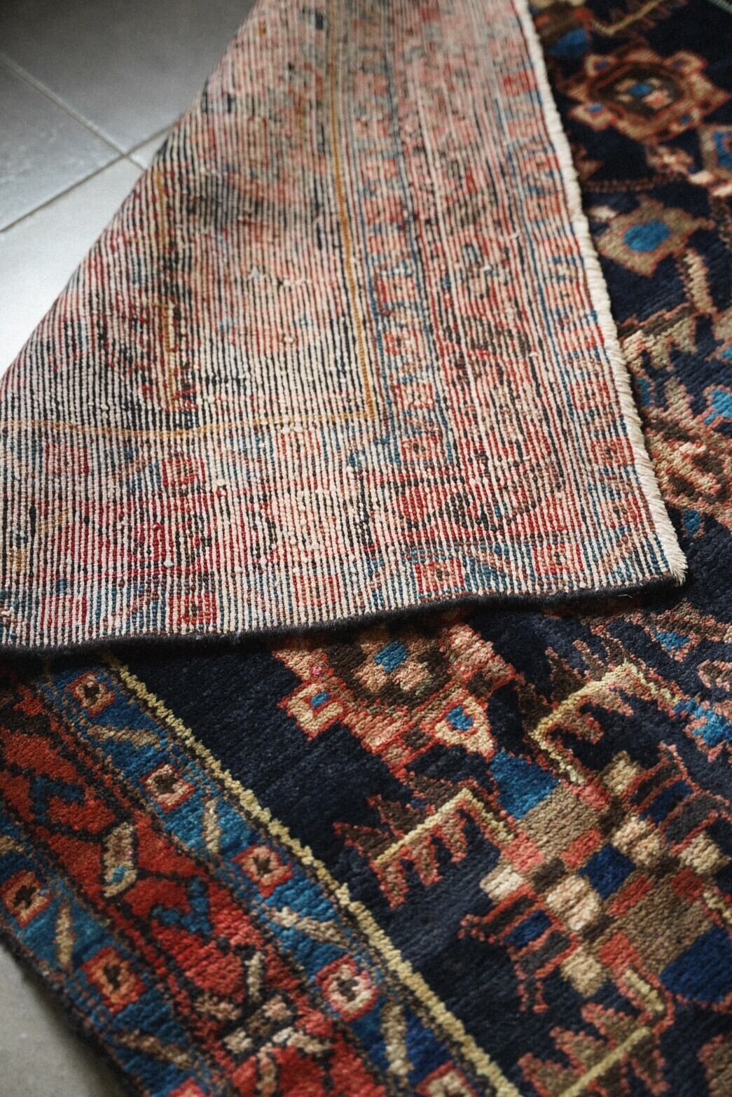 良質なペルシャ絨毯の産地として知られるハマダン州南東部のマラーイェル周辺で織られたラグ。