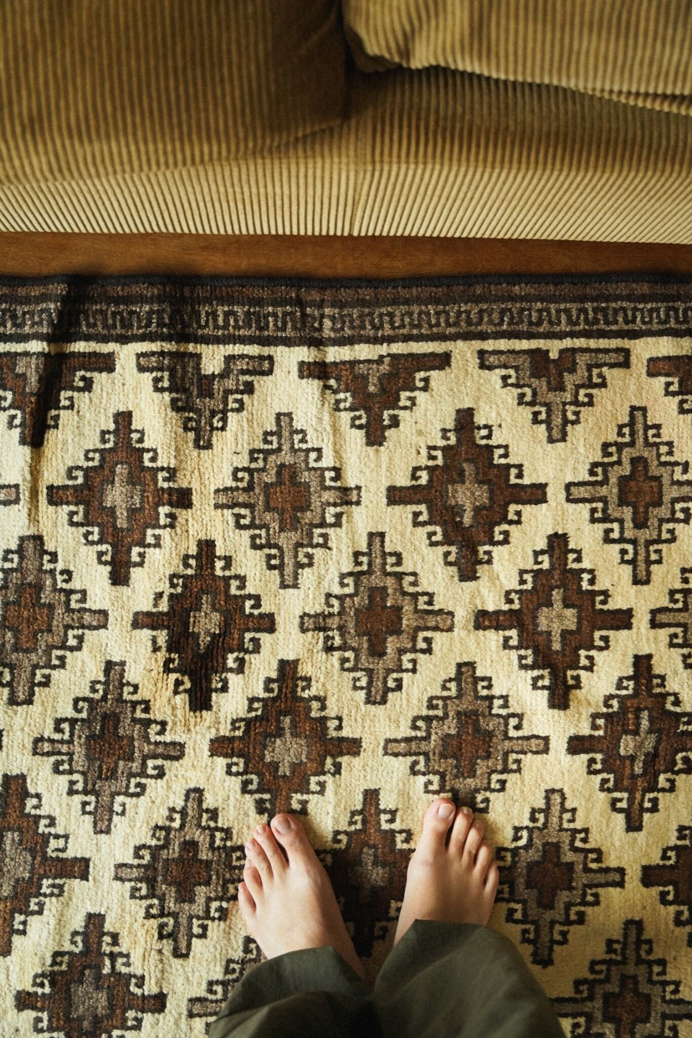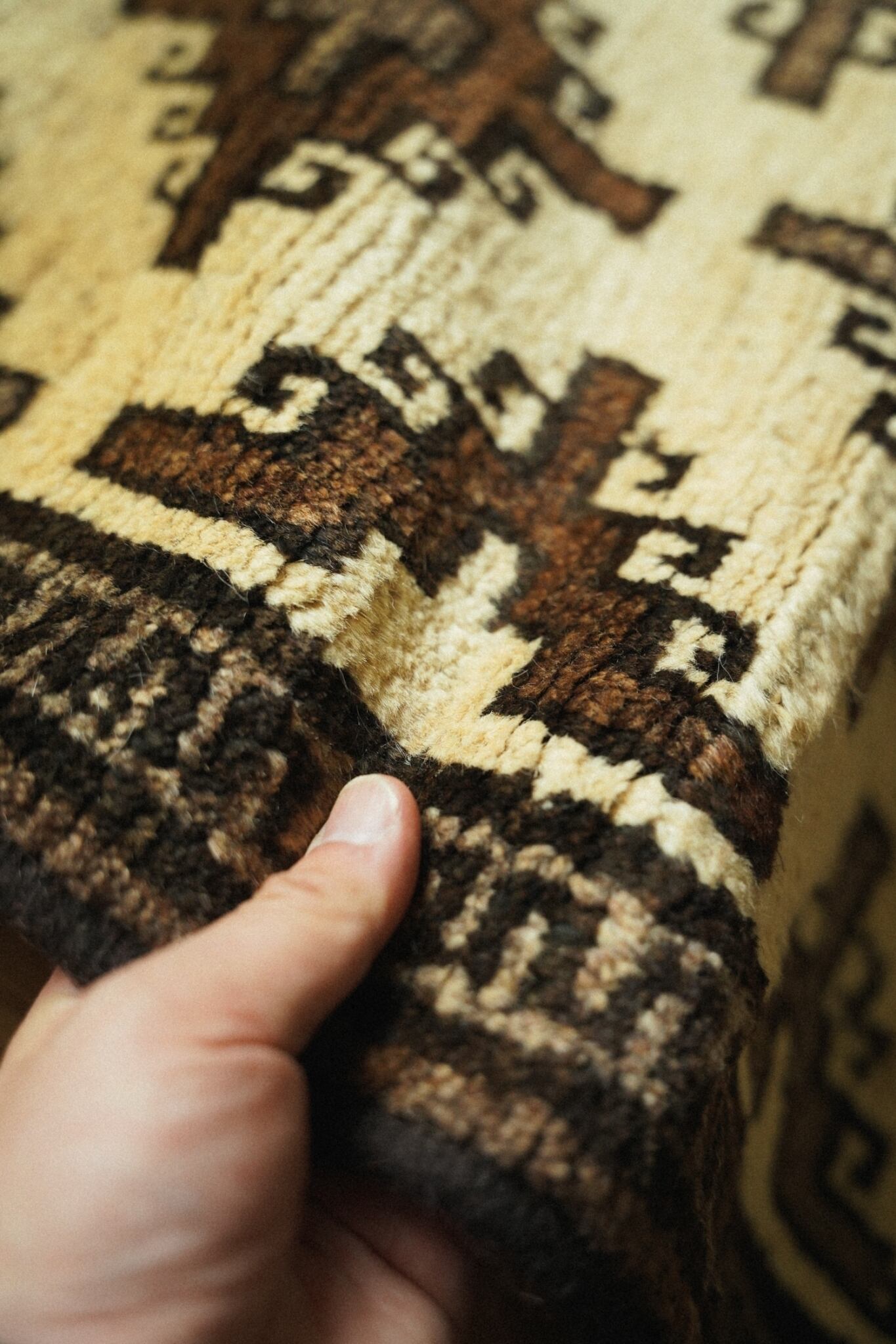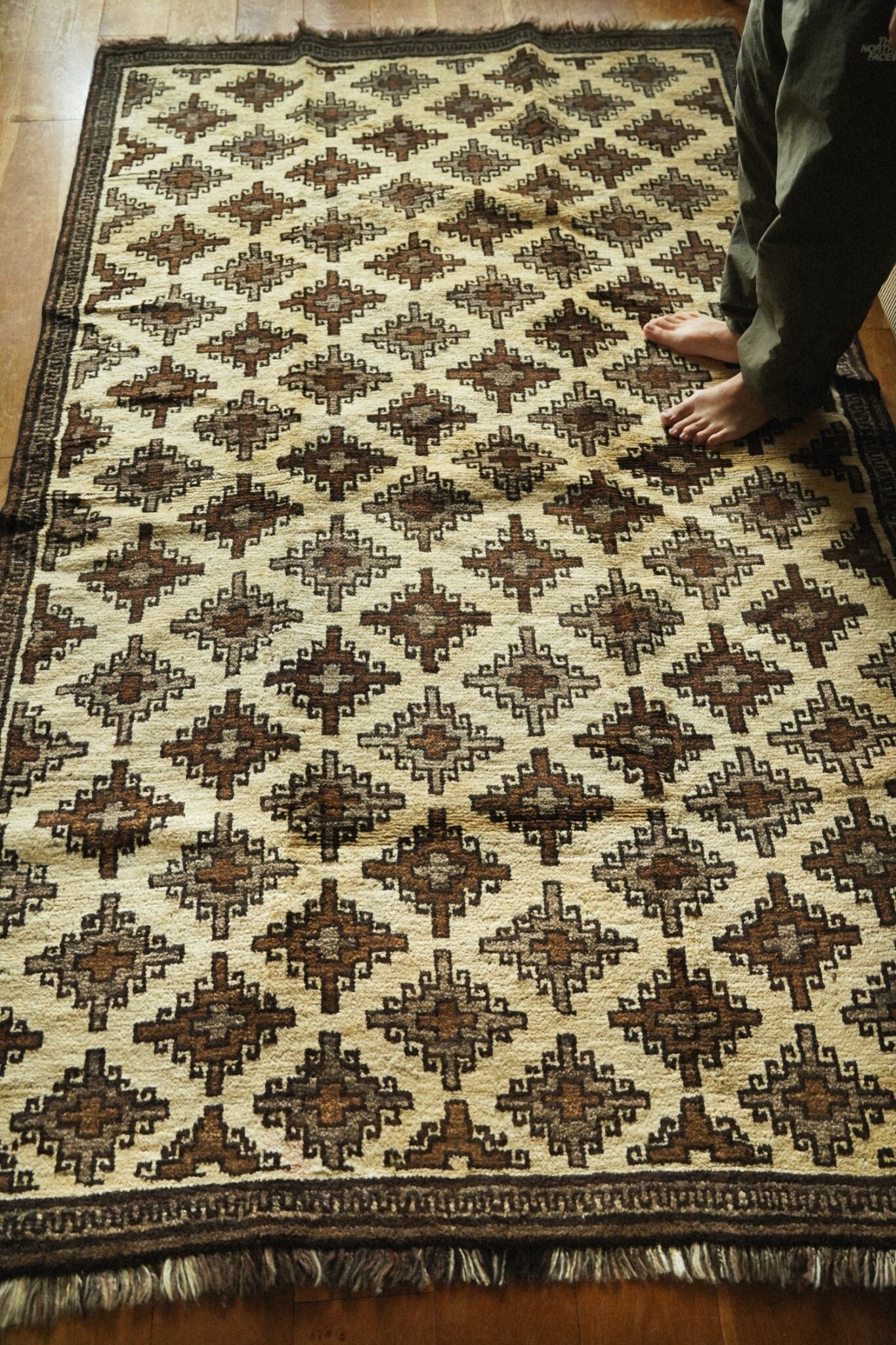 山岳地帯を遊牧しながら厳しい環境で生活するタイマニ族が織ったラグは秋冬にぴったりなフカフカで温かいラグ。