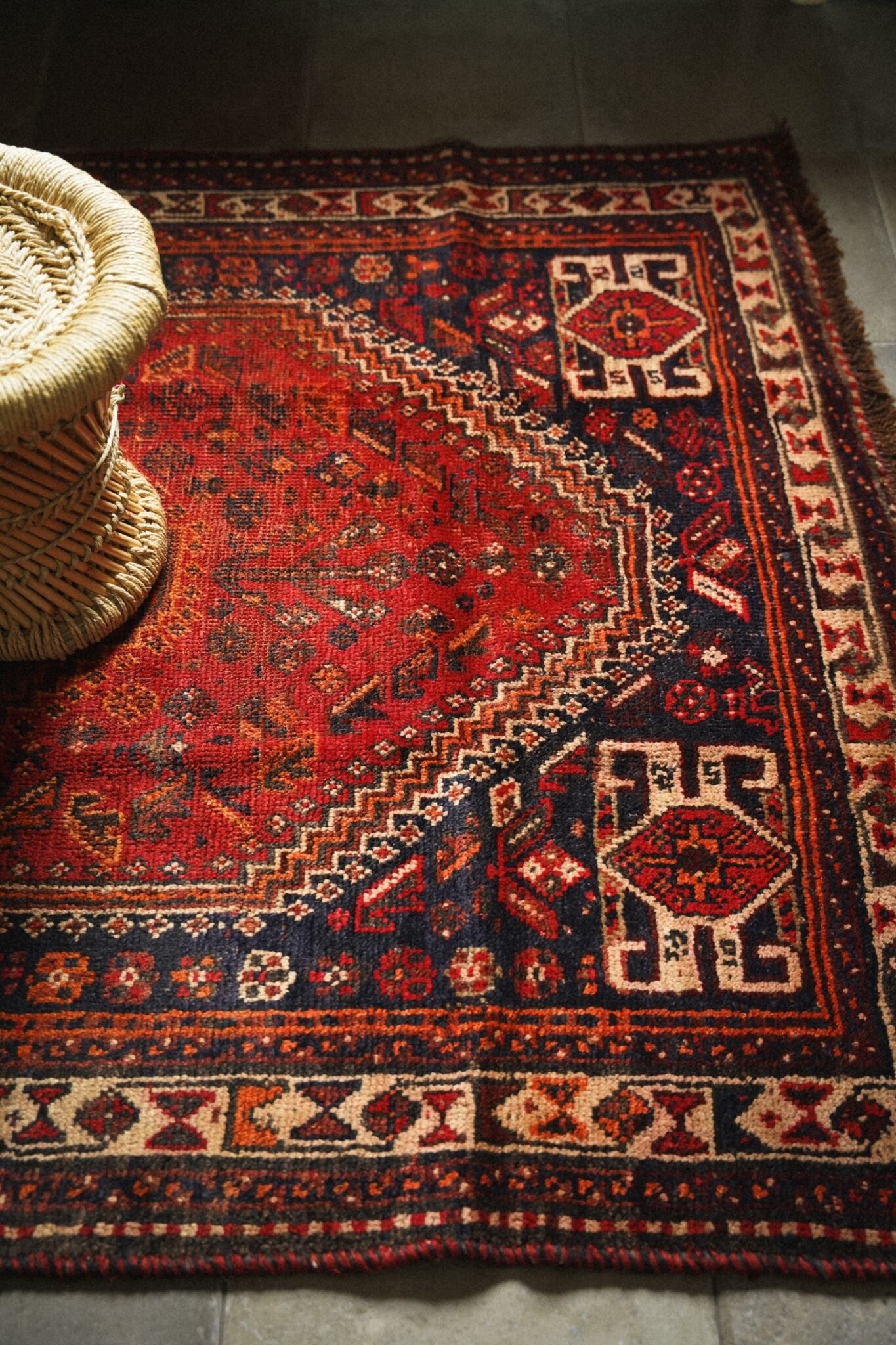 華やかな雰囲気になる赤系のカシュガイラグはお部屋の主役にもアクセントにもピッタリな一枚。