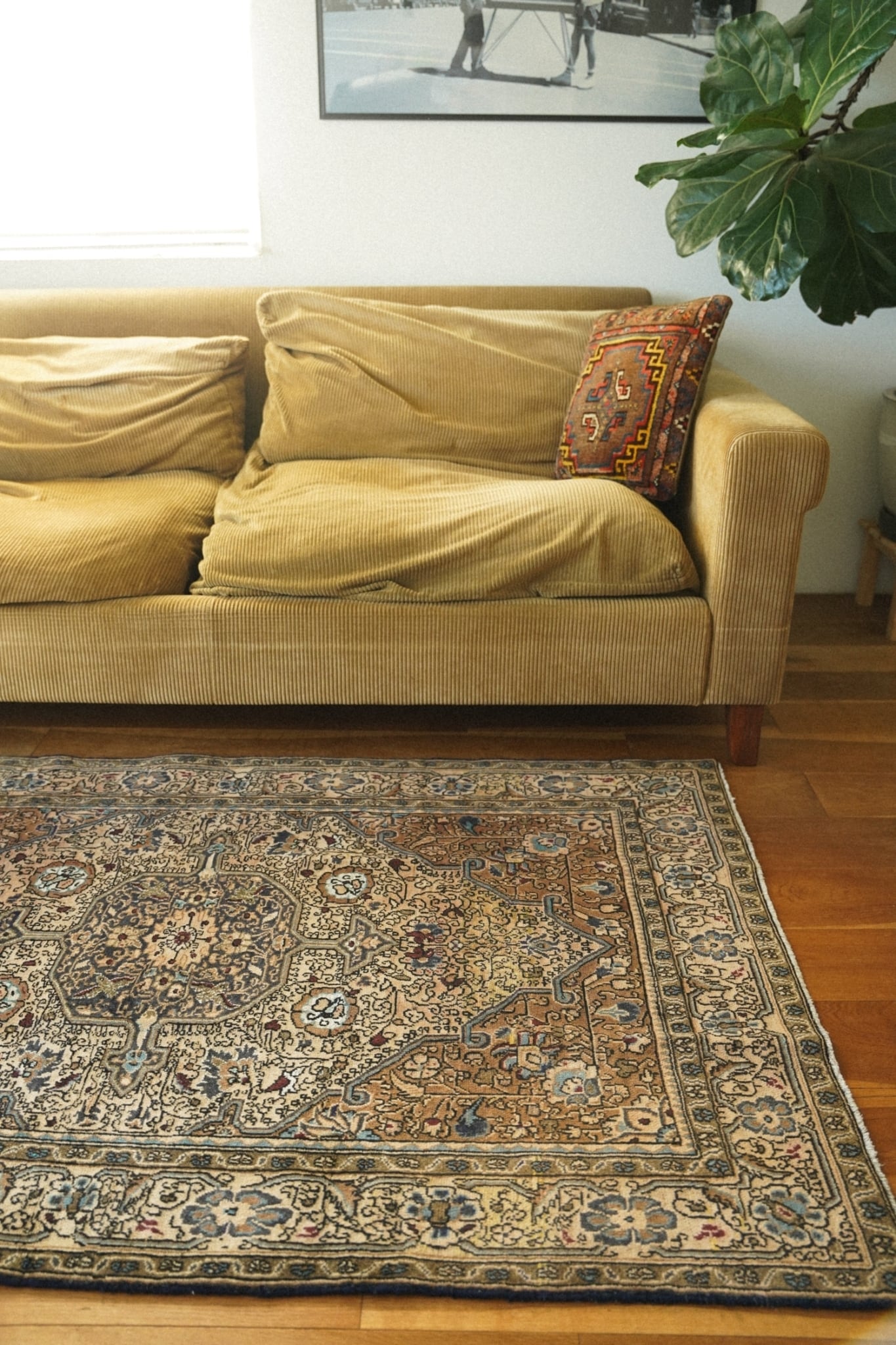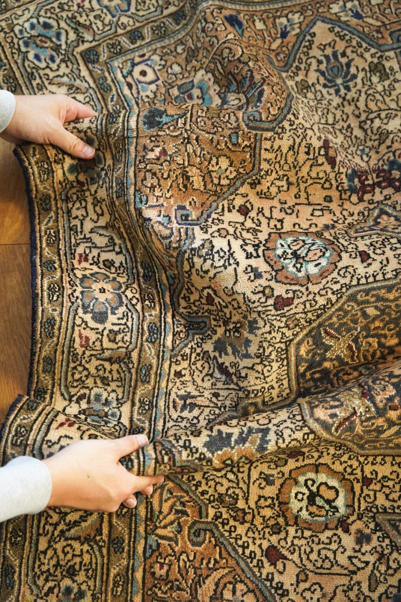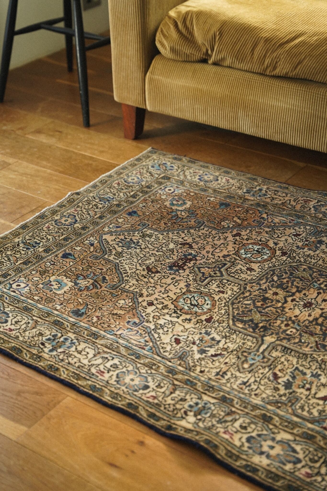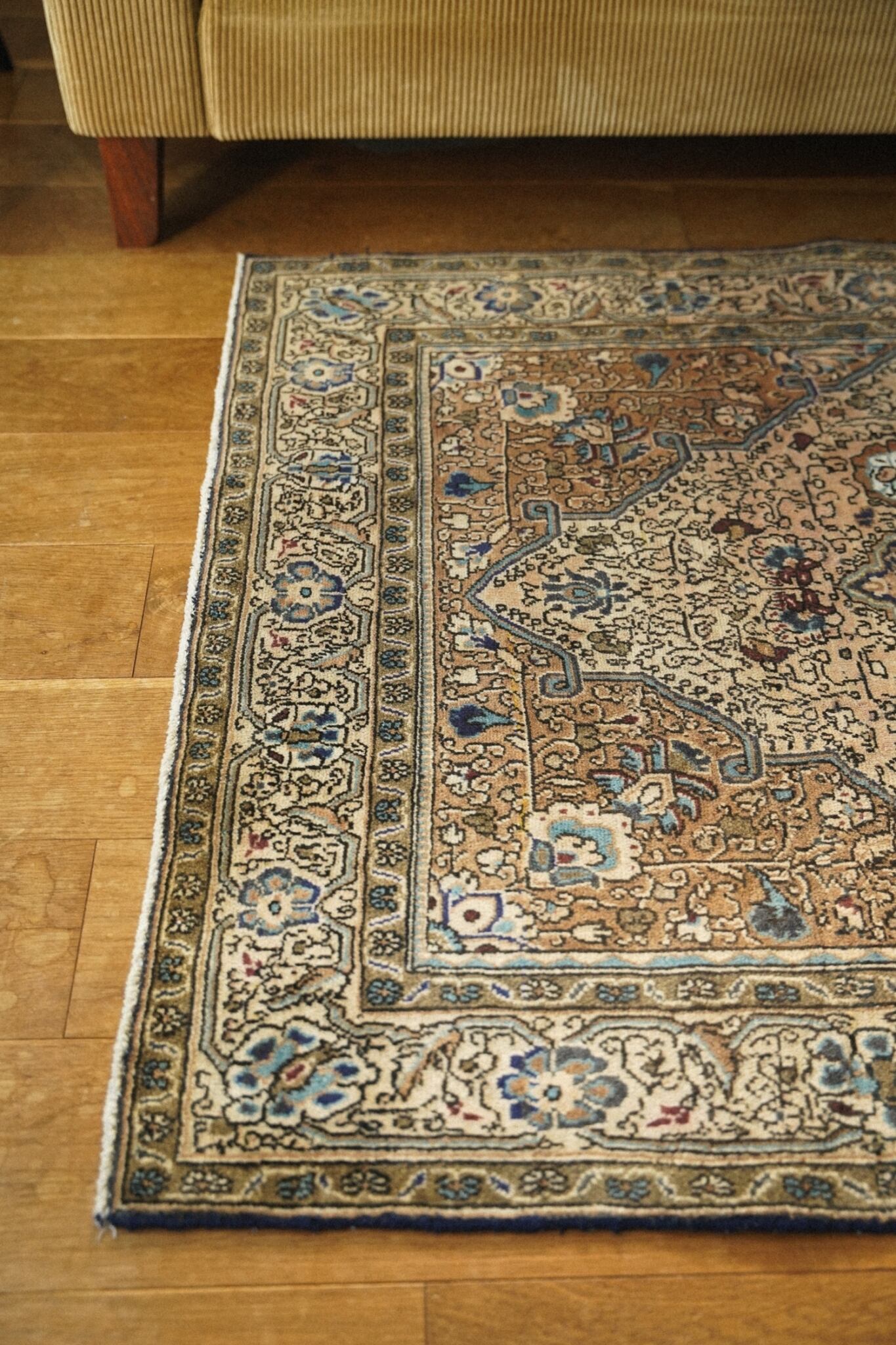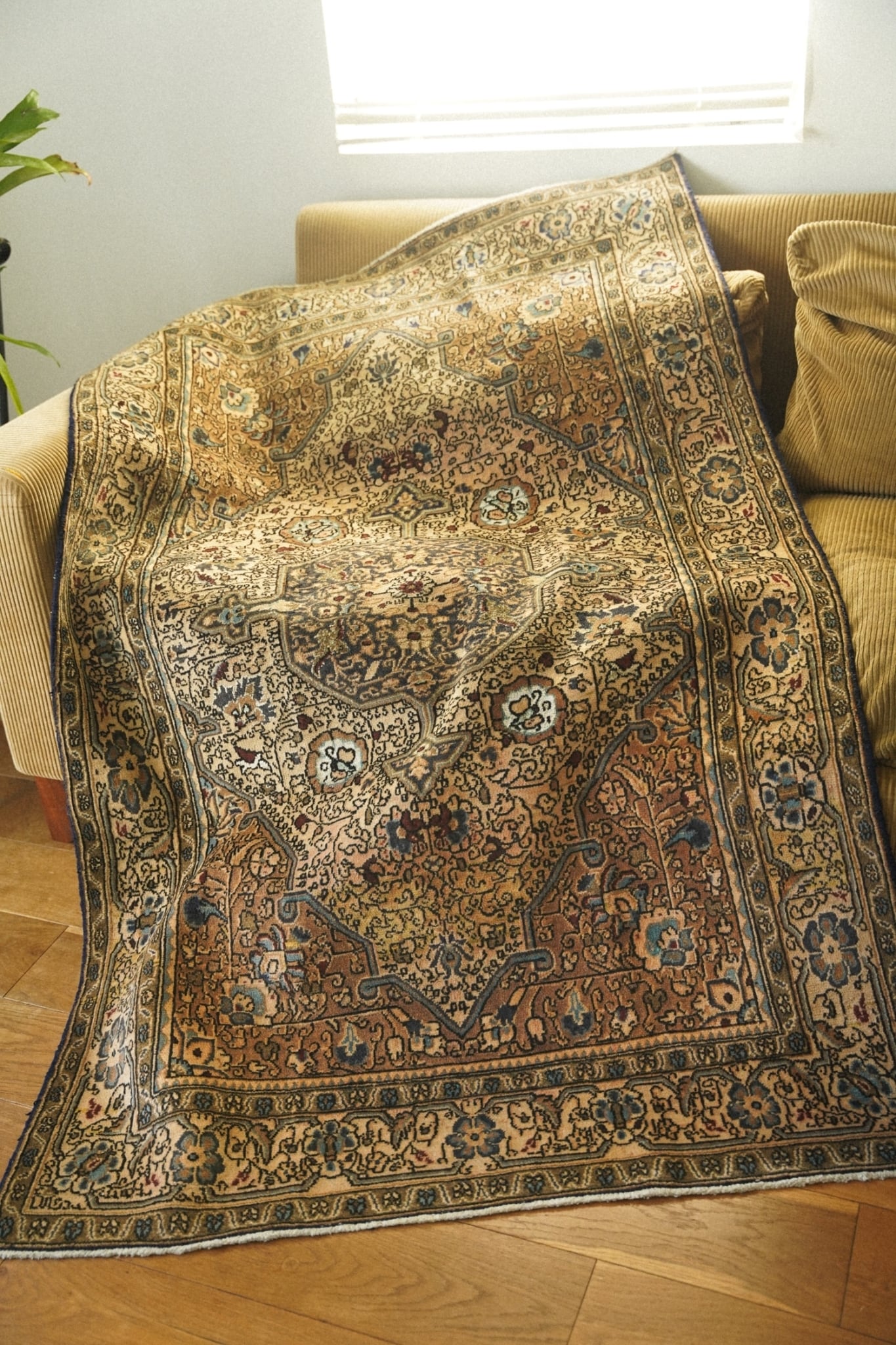 経年により多少パイルが低い箇所やリペア跡がありますが使用に問題はなく、大切に受け継いで使われてきたことが伝わってきます。