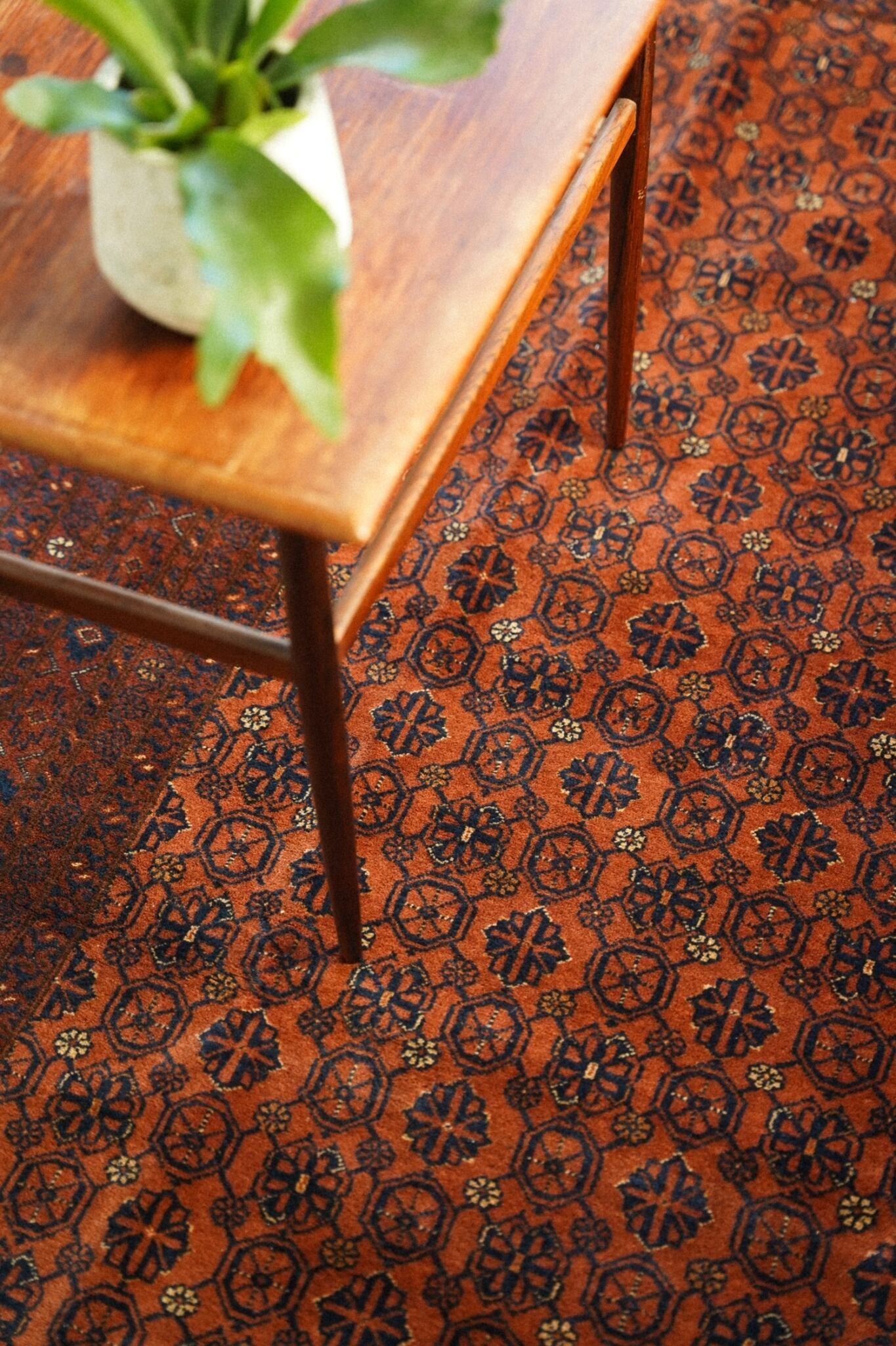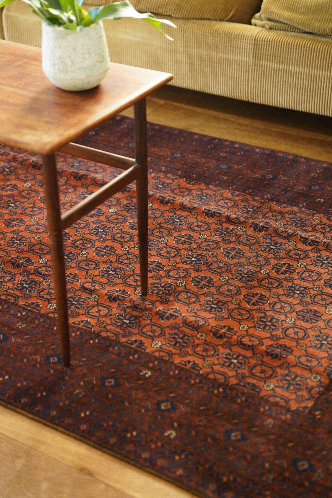 落ち着いた色味の赤系ラグはどんなインテリアにも相性良く馴染んでくれます。