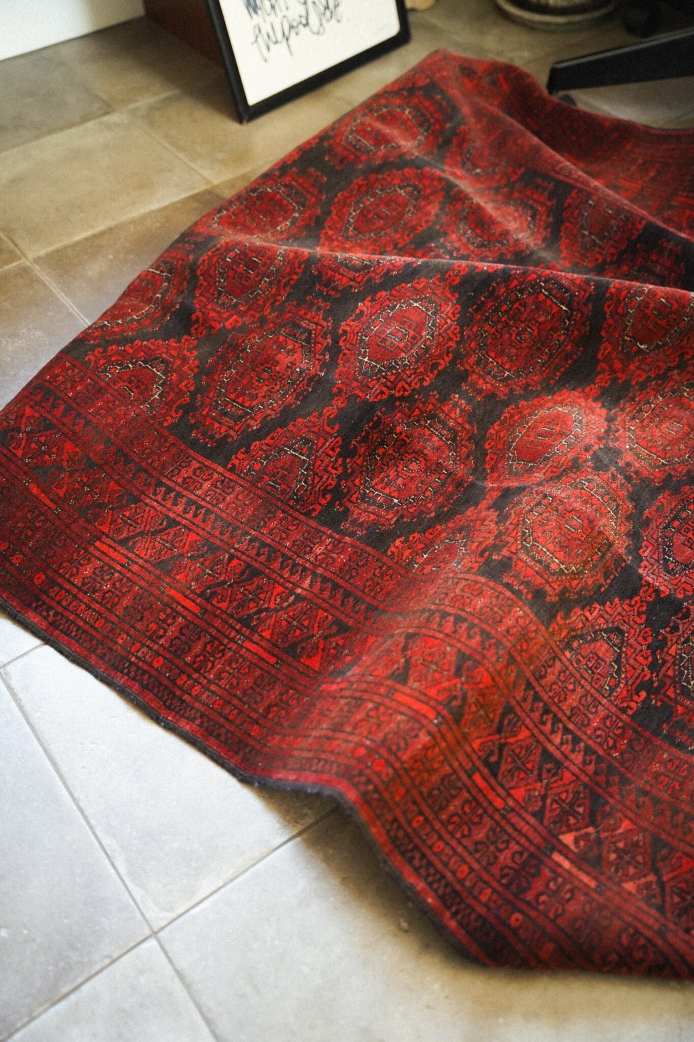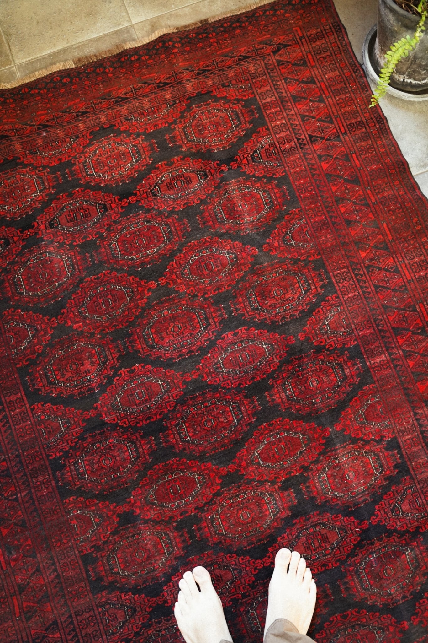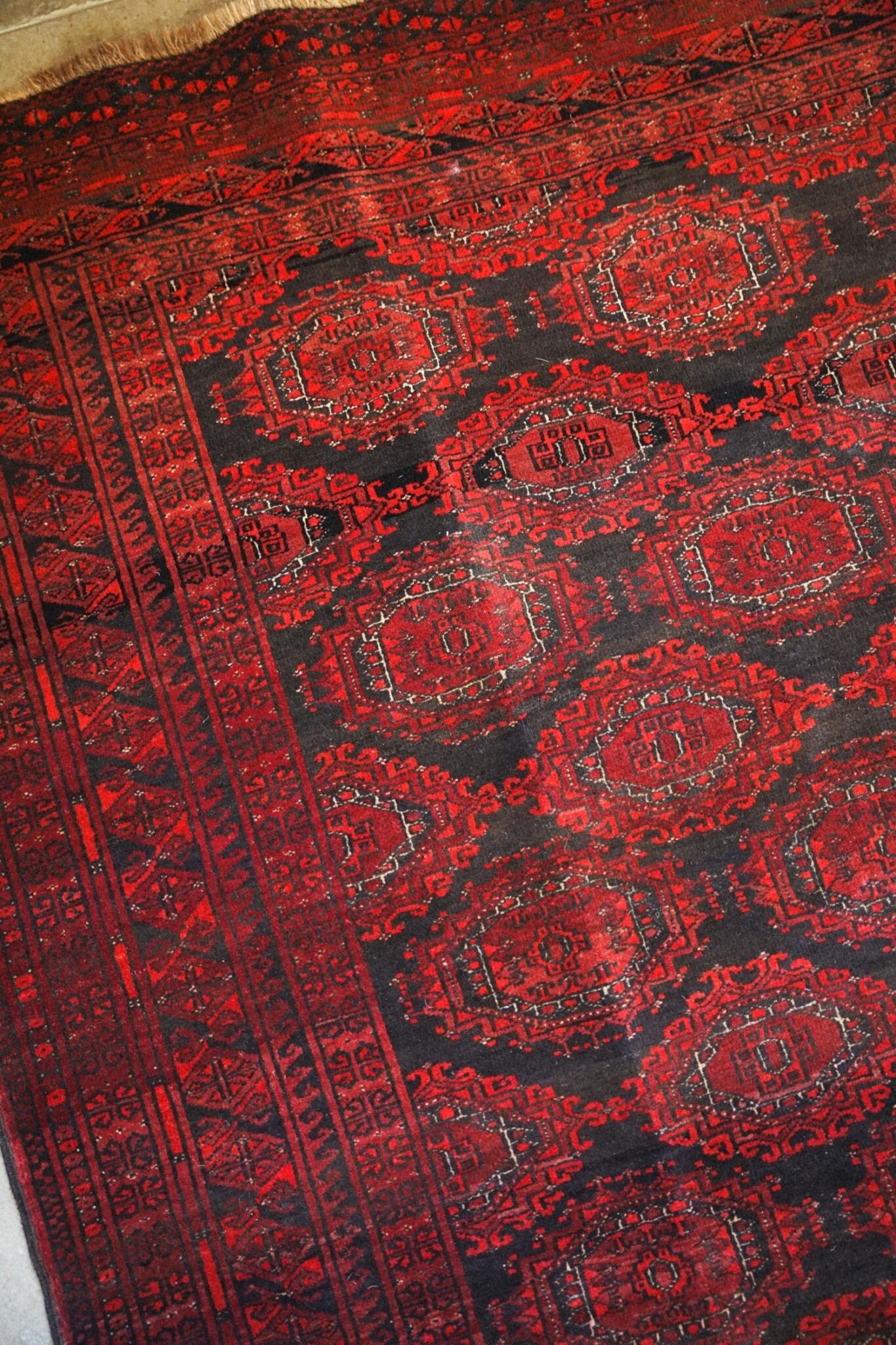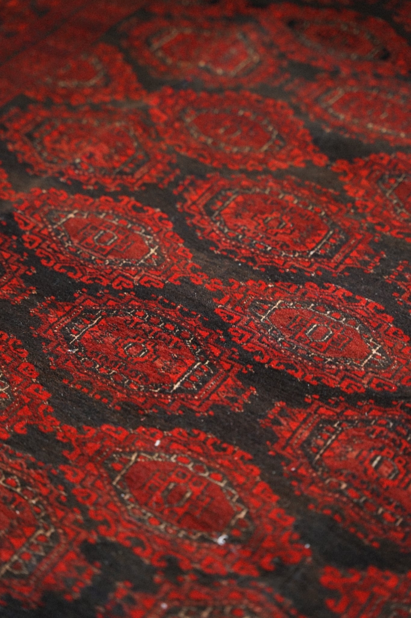 トルクメンラグらしい密度の詰まった織りで、滑らかで柔らかいウールがとても気持ち良いです。