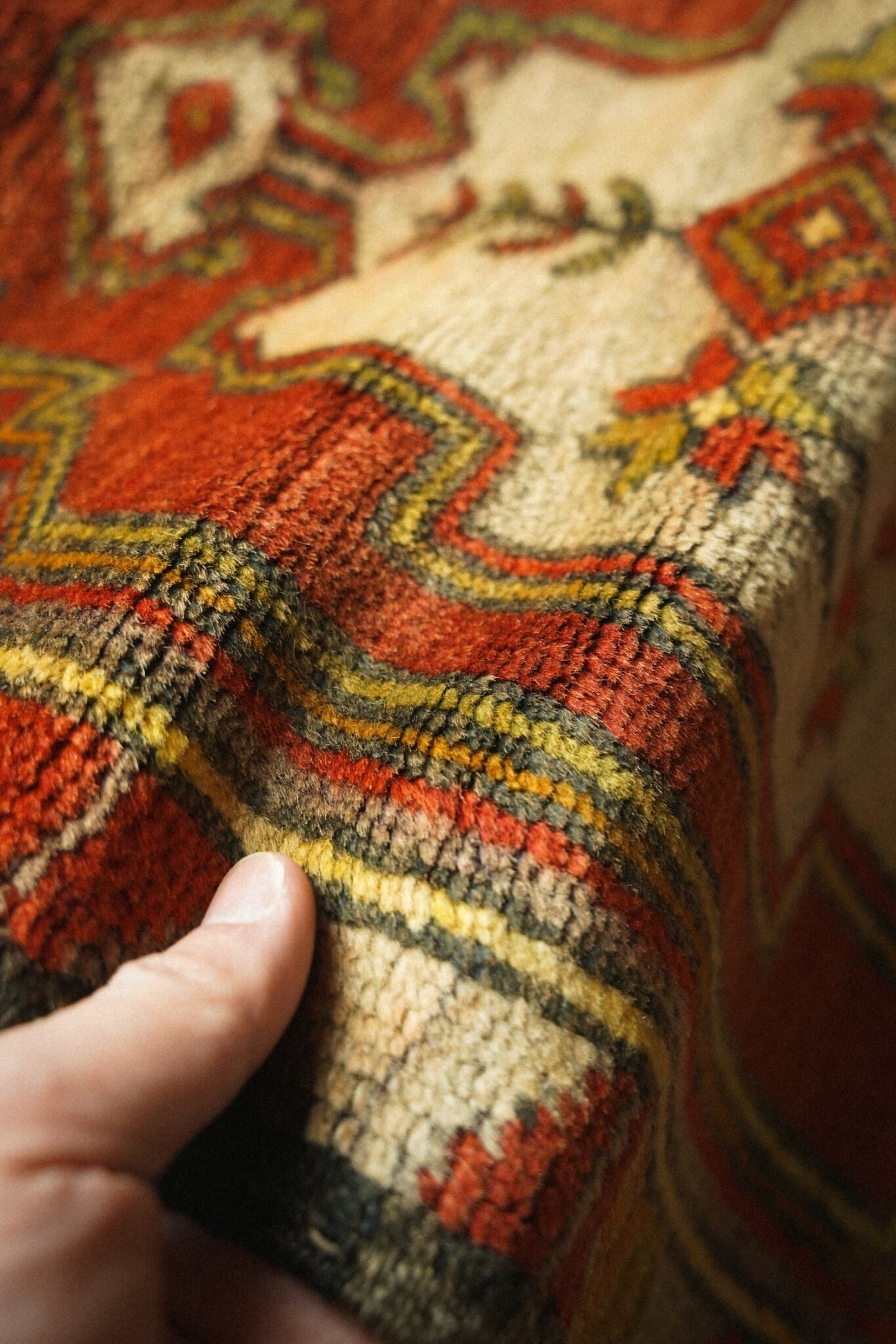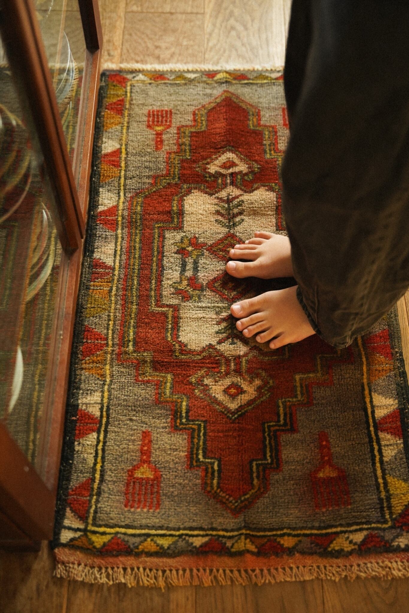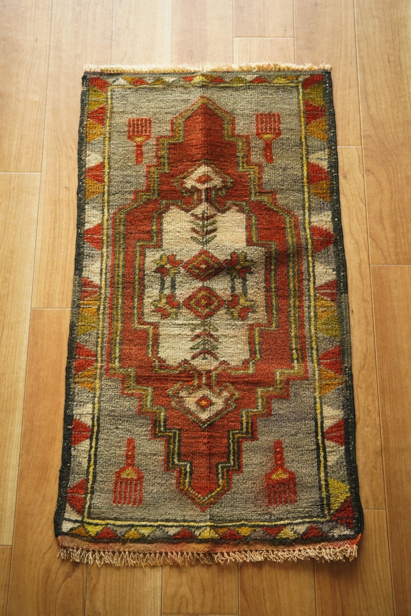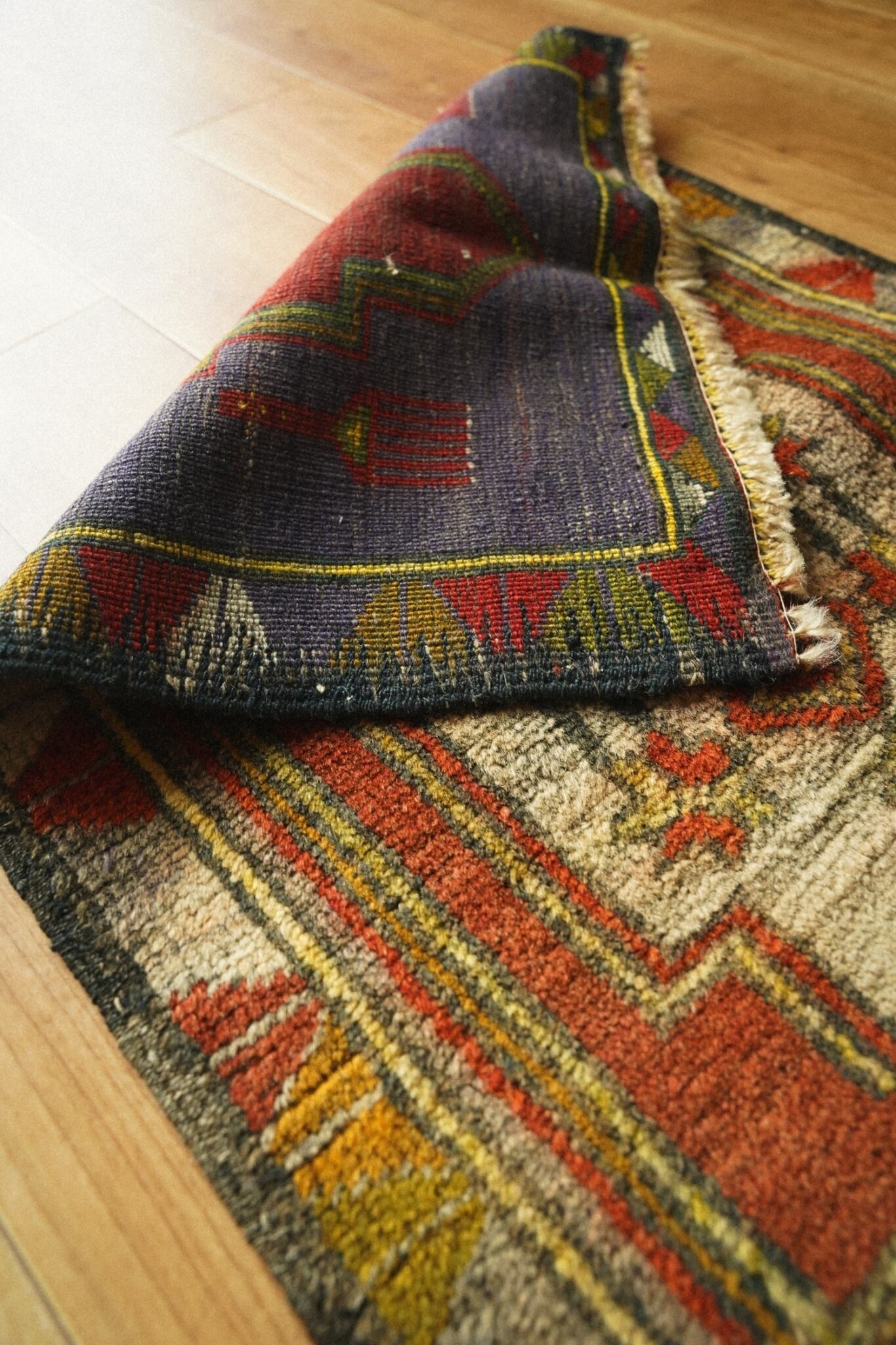 トルコのアナトリア地方で織られたヤストゥク(枕)と呼ばれる袋状のものの裏面を外して1枚のラグに仕立ててもらいました。
