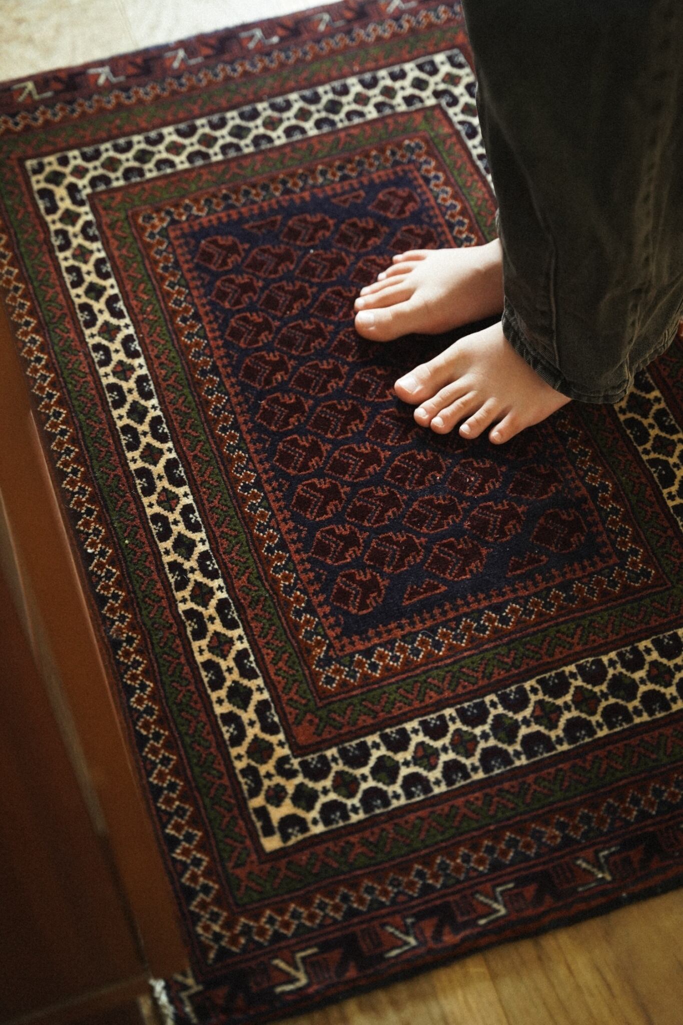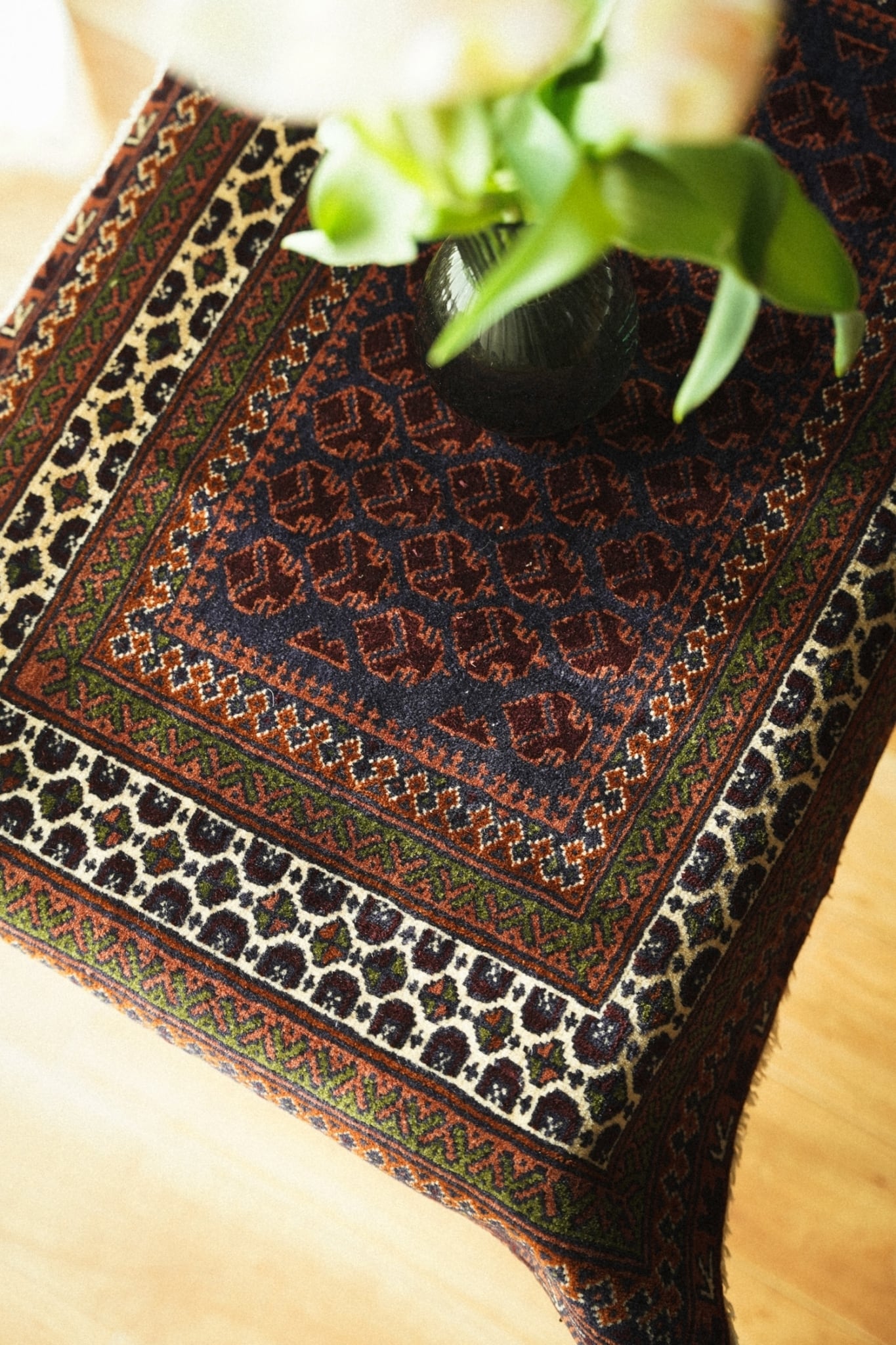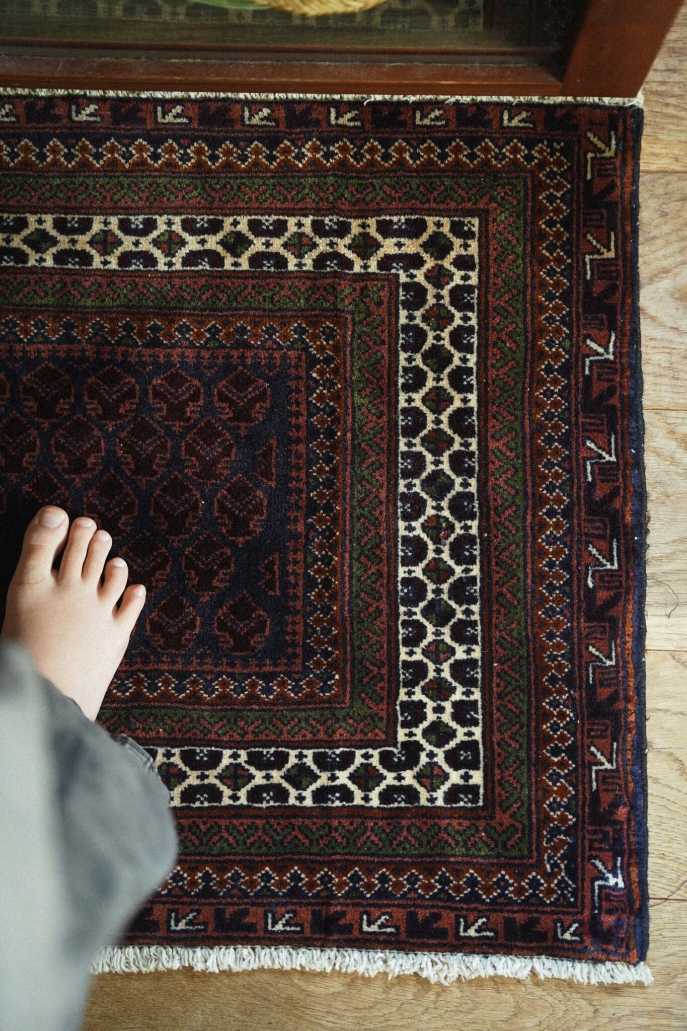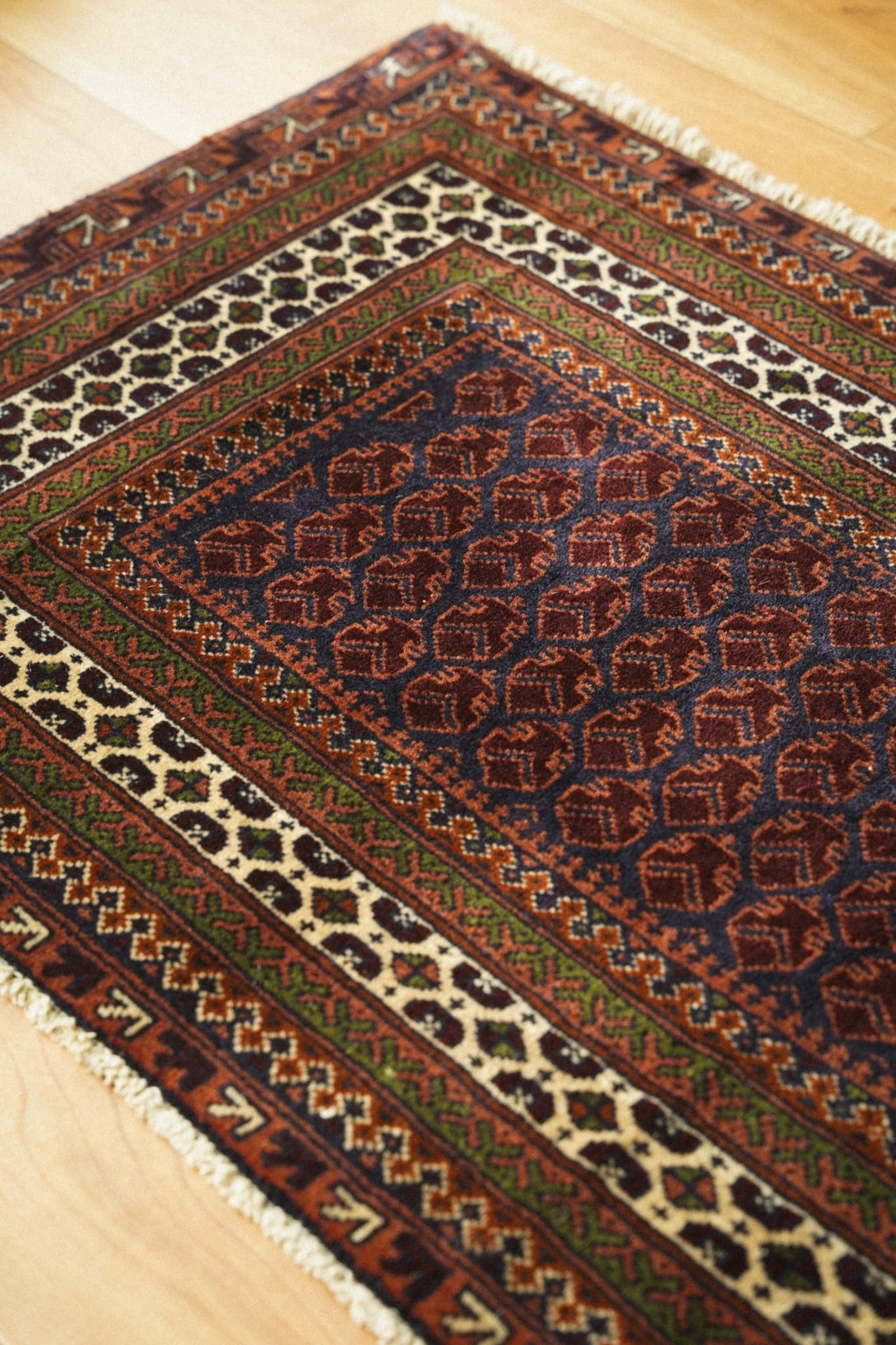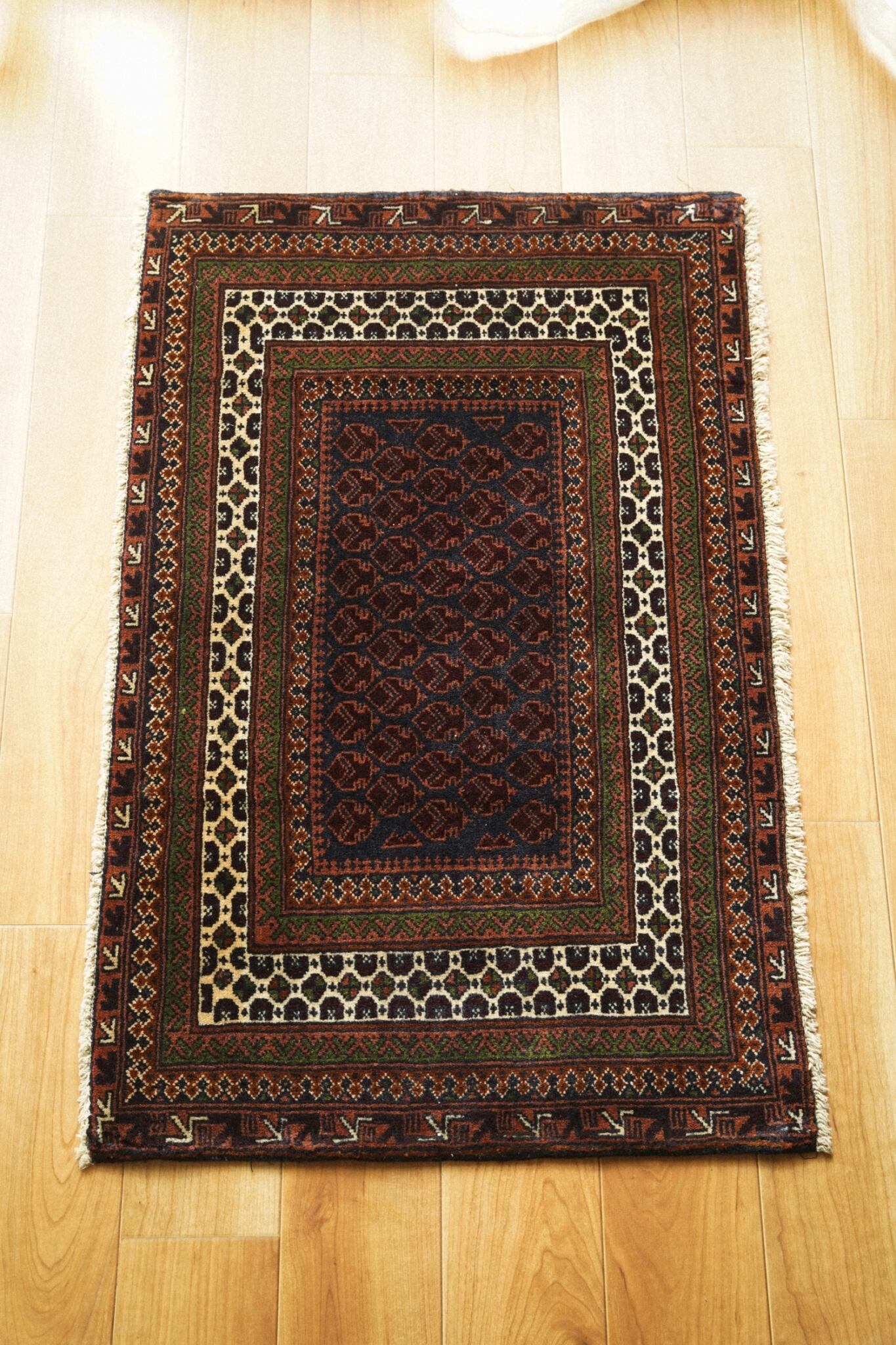 目立ったダメージはなくグッドコンディション。玄関やキッチン、デスク下やベッドサイドなど敷くだけで空間の雰囲気を変えてくれそうな魅力的なラグです。