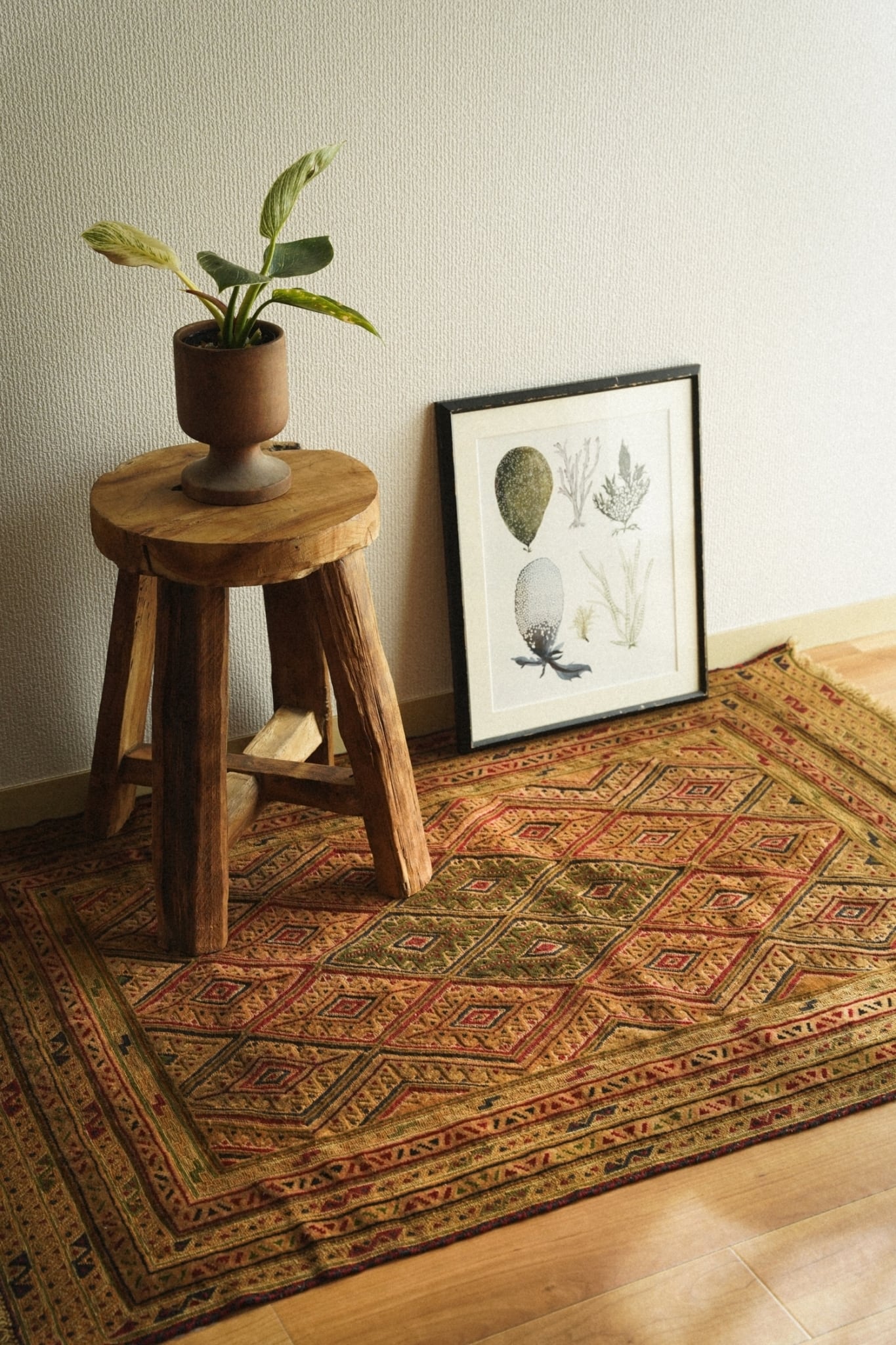 経年20年ほどのまだ若いラグで状態はとても良く、これからラグを育てる楽しみがありますね♪玄関やキッチン、姿見の前やベッドサイドにもおすすめのサイズ感です。