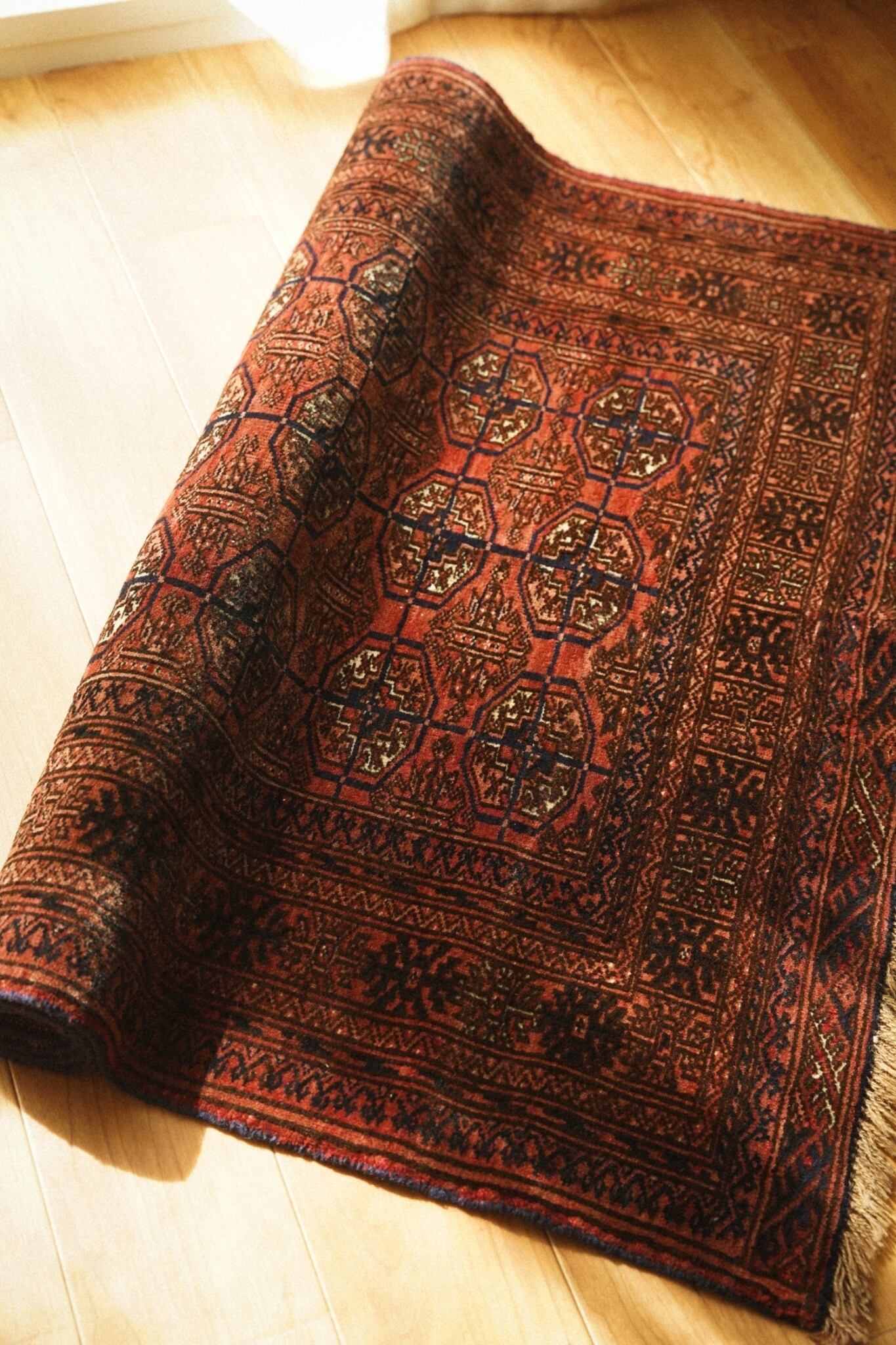 優しい色味の赤色のフィールドにMauri Gulと呼ばれるギュルがたくさん並んだデザイン。